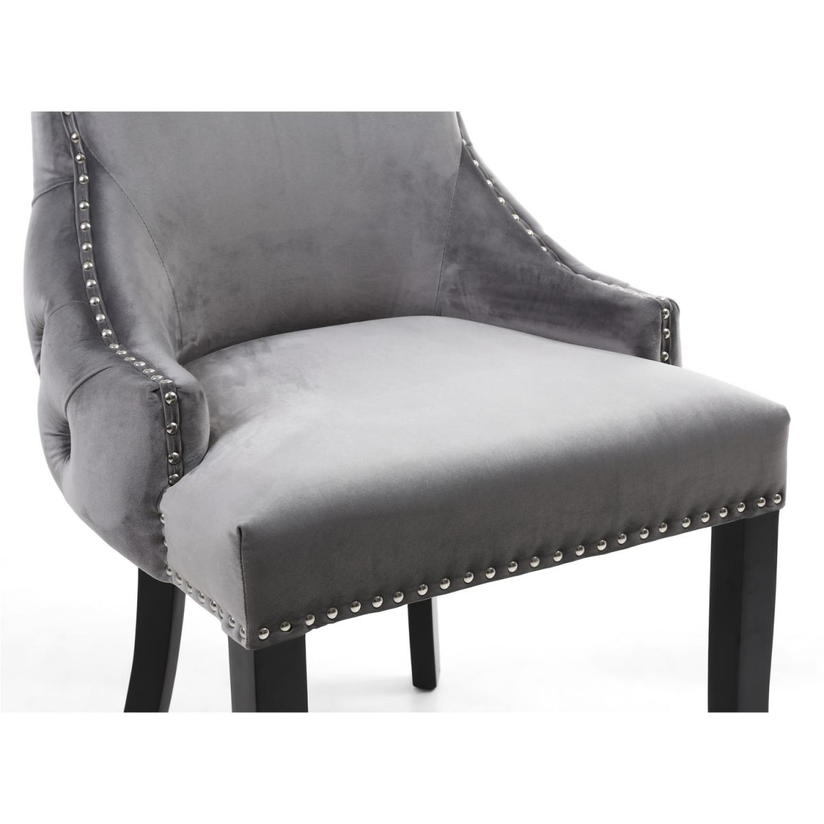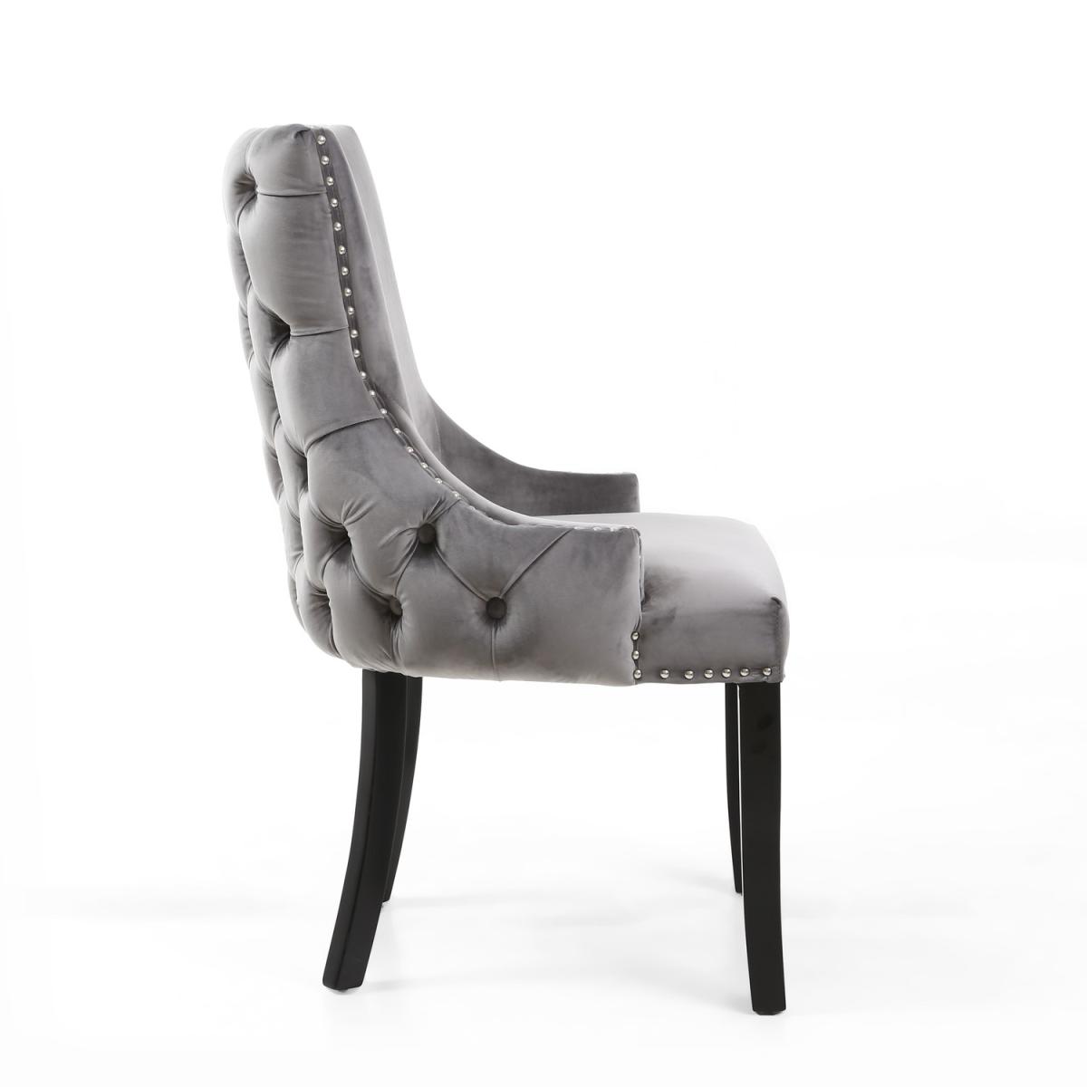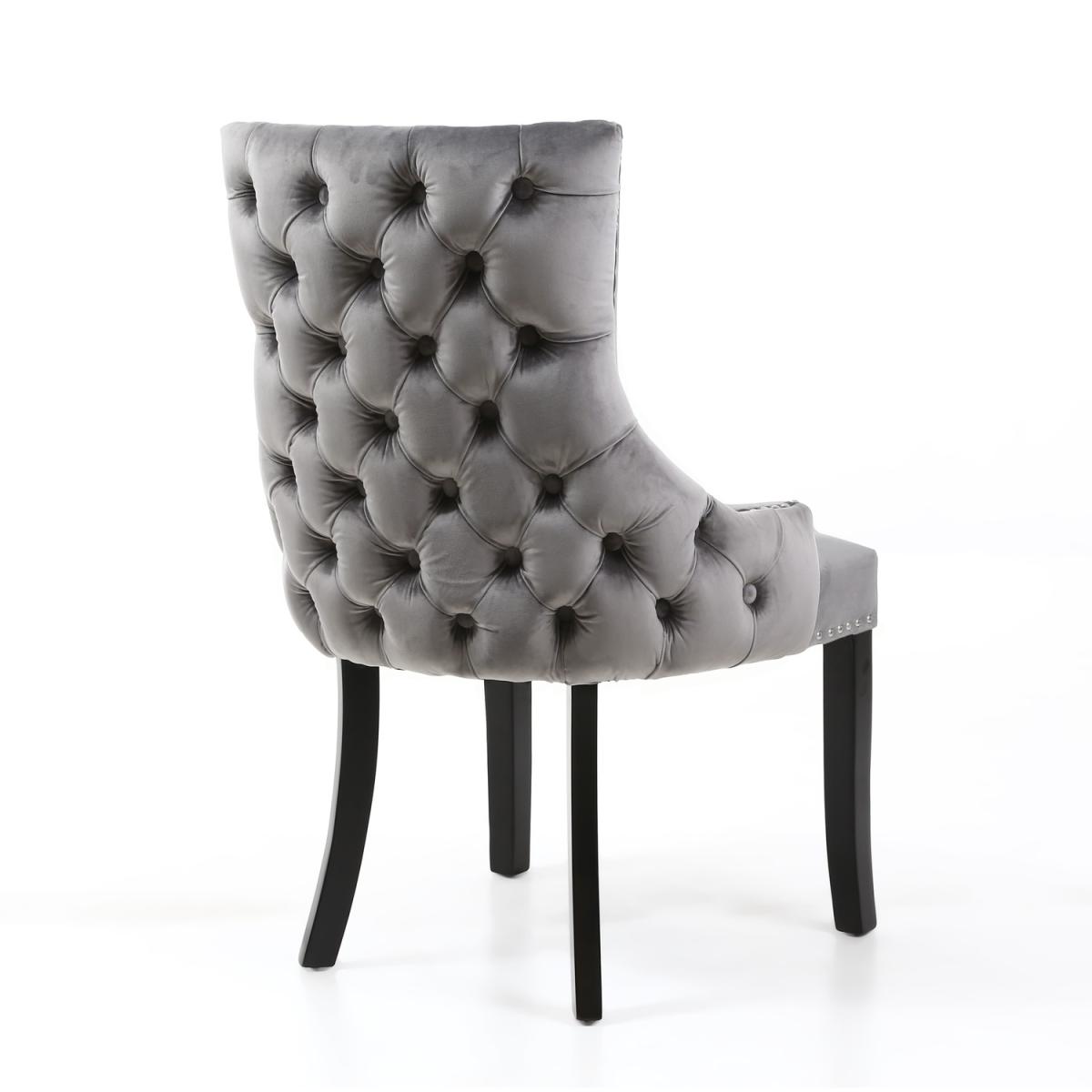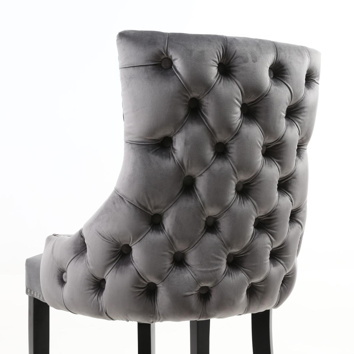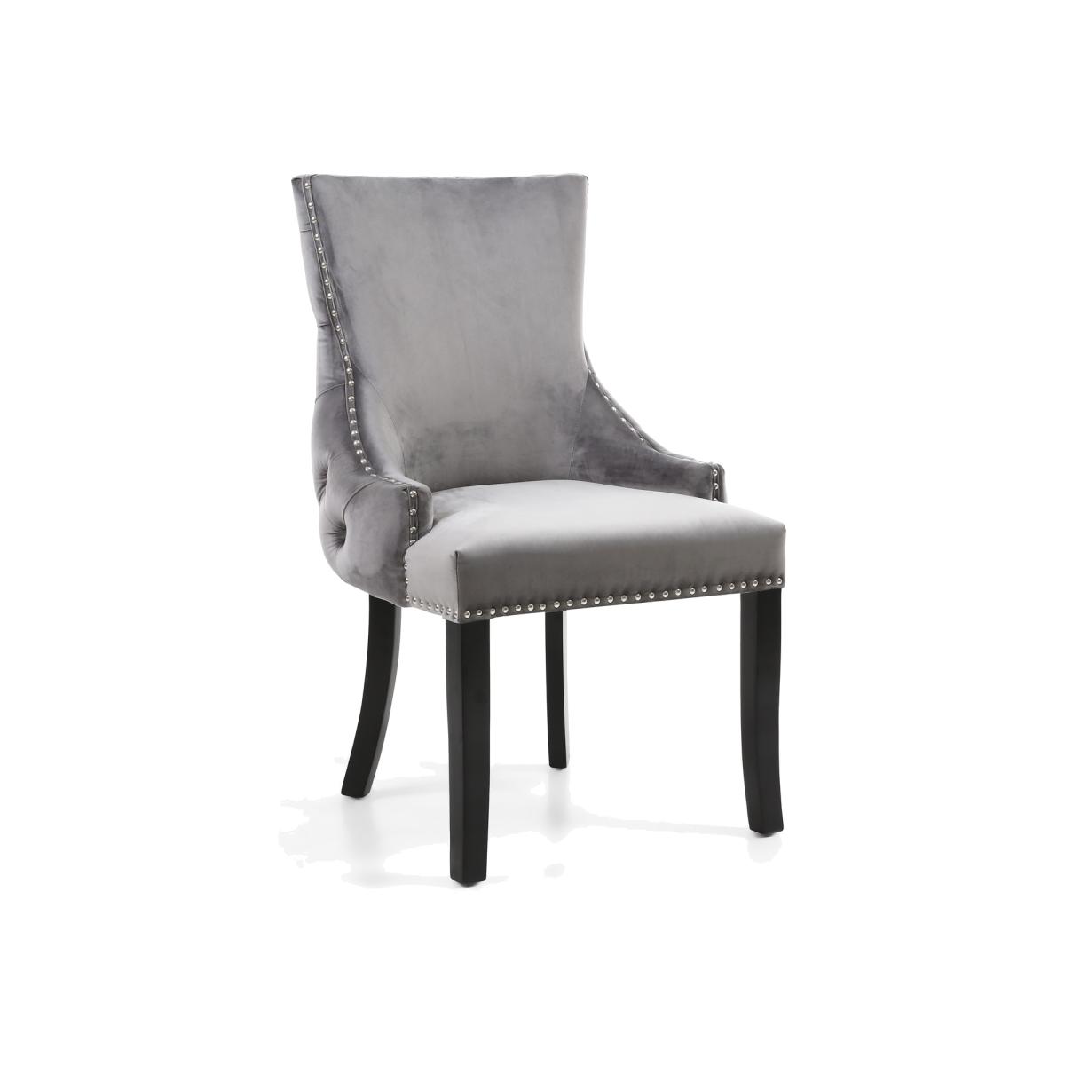 Dimensions:W63 x D63 x H98 cm The velvet Winslow dressing table chair in grey features a high curved back and winged design. Features: The Winslow by Shankar is a plush and elegant dressingtable chairbuilt on style and comfort It has a high curved back and winged design The front has plain luxurious brushed velvet upholstery whilst the back and sides are finished with diamond stitch panelling to add further refinement Stud detailing to the edges of the chair add to its features With its sprung and belted seating, it offers total comfort Leg assembly required