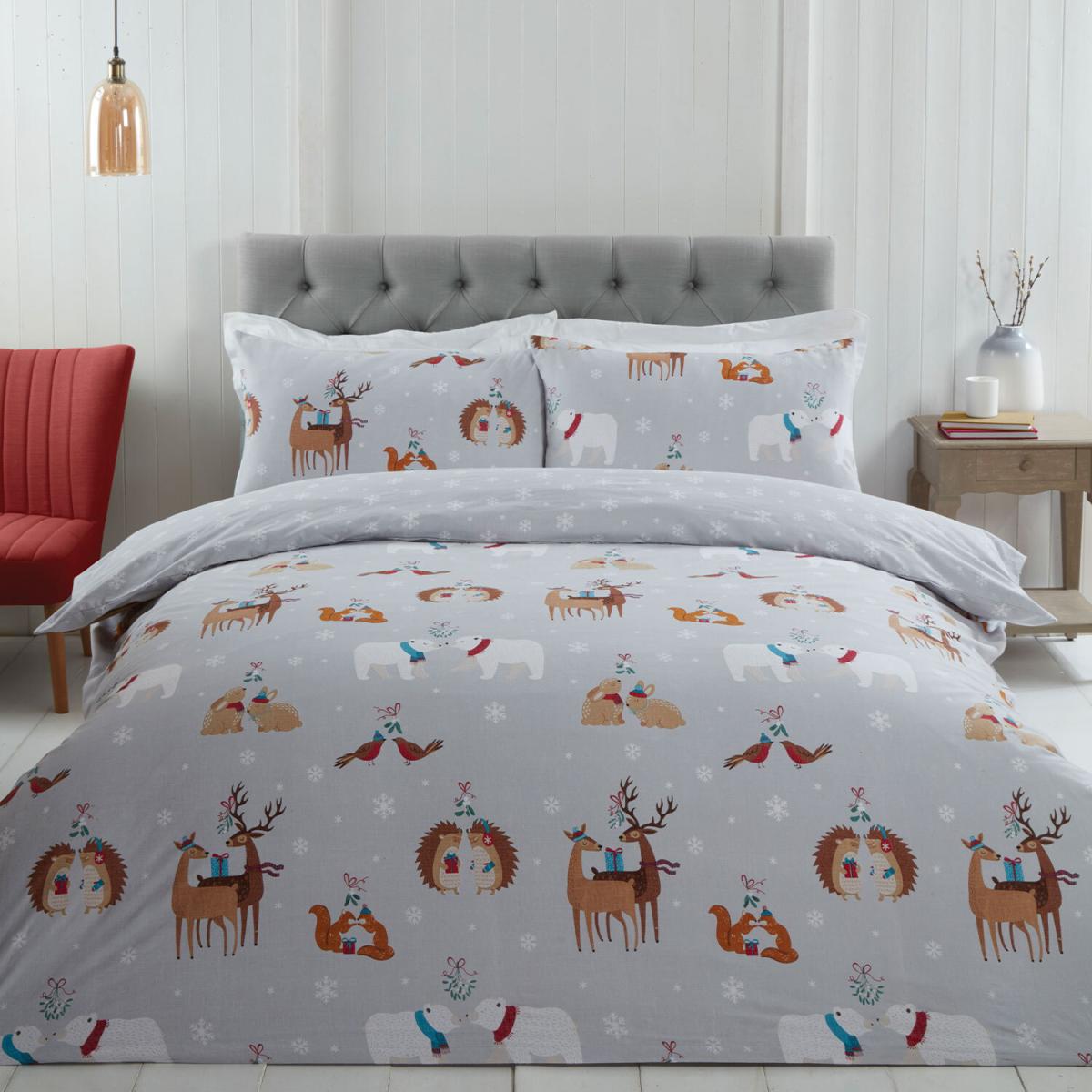 Snuggle up in seasonal style with this Winter Animal Kisses Duvet Cover and Pillowcase Set, featuring an adorable print of popular Xmas animals such as polar bears, deer, hedgehogs, squirrels, and robins. The coordinating reverse is decorated with a scattering of white snowflakes, turning your bedroom into a cosy retreat during the colder months.