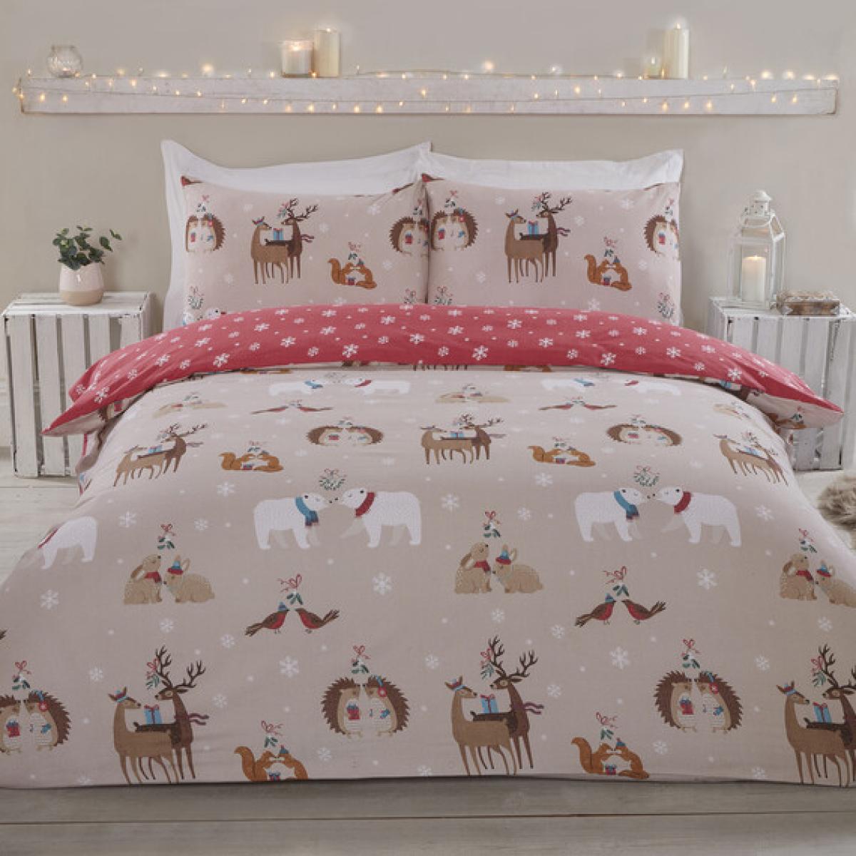I love this bedding set for its playful and festive vibe, making it an ideal choice for creating a cosy, seasonal look in a neutral or rustic-inspired bedroom. The charming animal motifs suit both traditional and contemporary interiors, especially those with a woodland or nature theme. For styling, I recommend keeping the rest of the room simple and opting for complementary textures like wool throws or textured cushions to enhance the cosy feel. Pair it with understated bedside lamps and warm lighting to let the duvet do the talking, and consider layering with a soft, chunky knit blanket for added warmth and visual interest. This set works great in a family home, or in guest rooms where a welcoming, seasonal touch is desired.