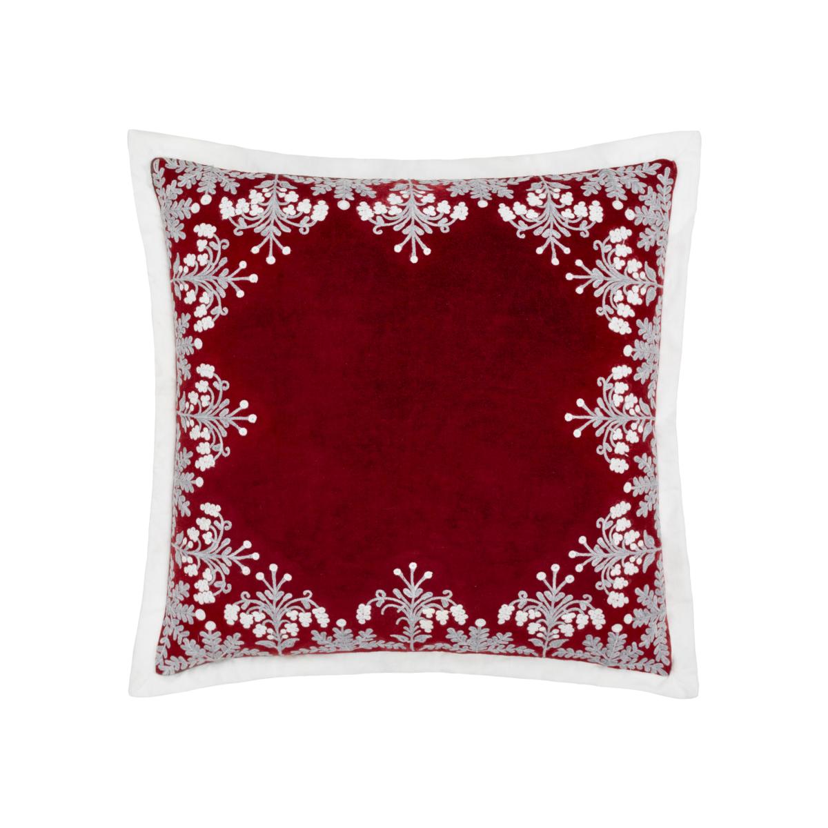 Winter Bloom Embroidered Cushion - Red / 80 Feather 20 Polyester