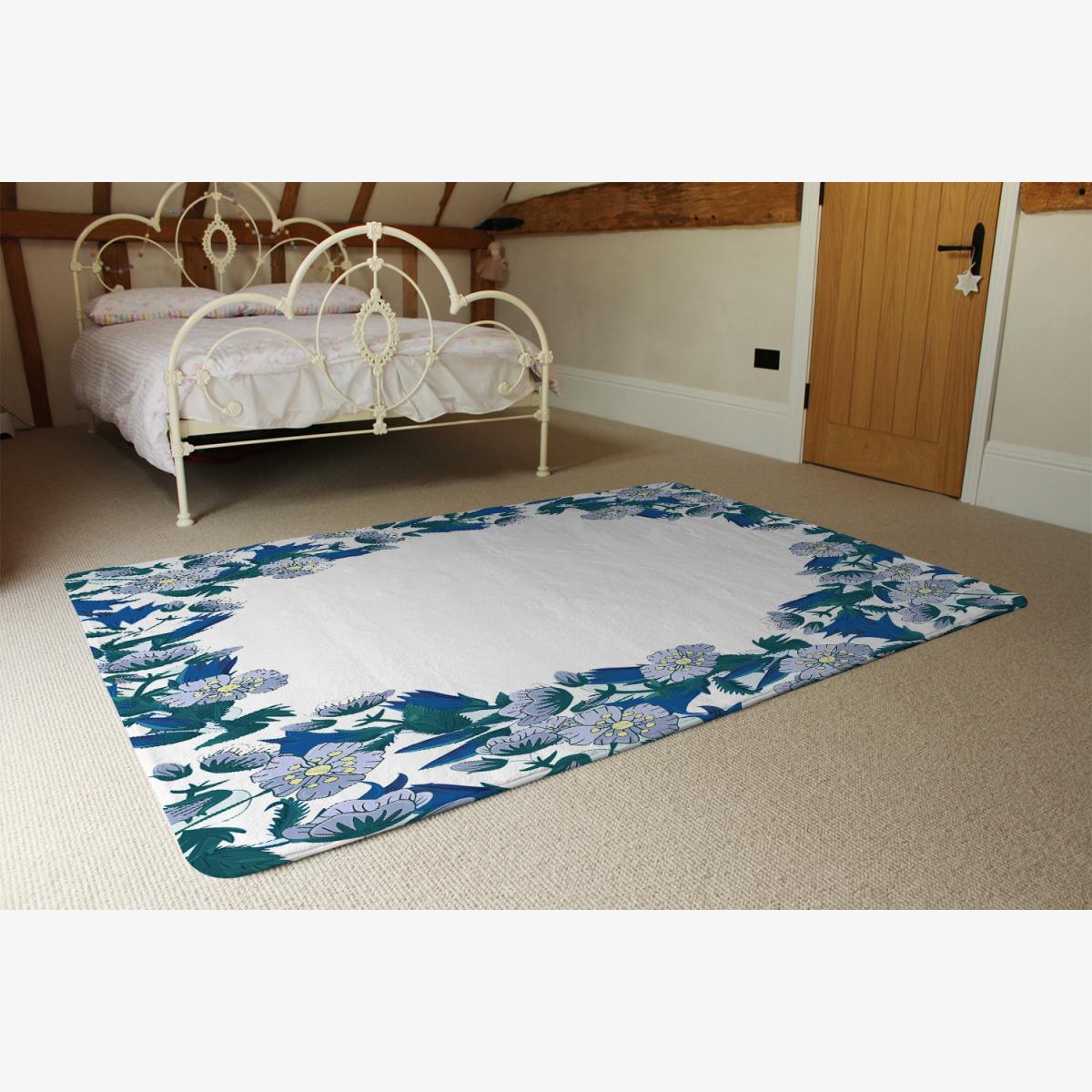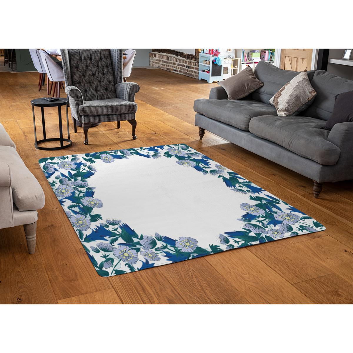 The Winter Blue Flowers Rug adds a fresh, calming touch to both contemporary and traditional interiors. I love how its blue palette can bring a cool, tranquil vibe to living rooms or bedrooms, making spaces feel more serene. It works particularly well layered over neutral carpets or wooden flooring, creating a focal point without overwhelming the room. For practical styling, pair it with soft cushions or throws in similar hues for a cohesive look, and consider placing it under seating areas to define space without cluttering. Its size makes it versatile enough to anchor a seating arrangement or work well in a smaller nook or reading corner.