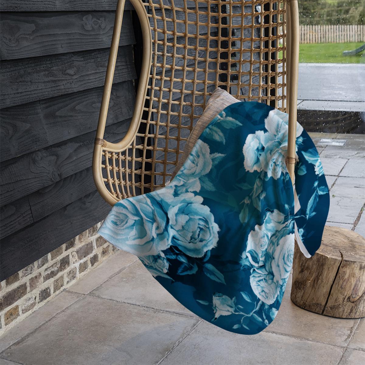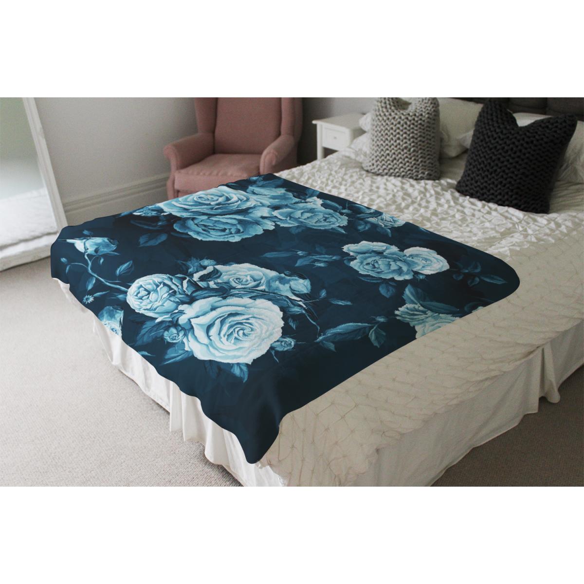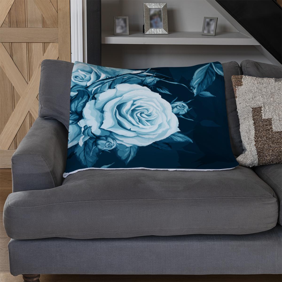 Winter Blue Roses Blanket - Blue