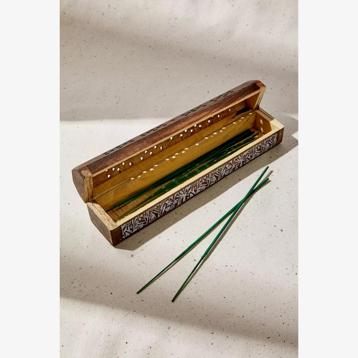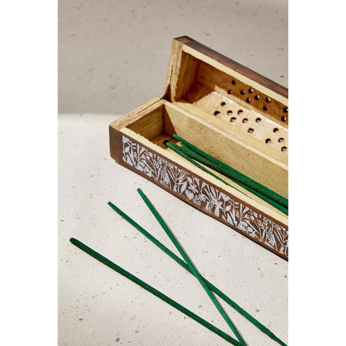 Create an atmosphere to relax in with this pack of incense and a bohemian-style box. The wooden box features ornate etched and decorative details, and the incense inside burns to fill your room with scent. **Content + Care** \- Includes incense sticks & storage box \- Wood \- Spot clean \- Scents:Pomegranate noir & Oud \- Scents are assorted and will be selected at random