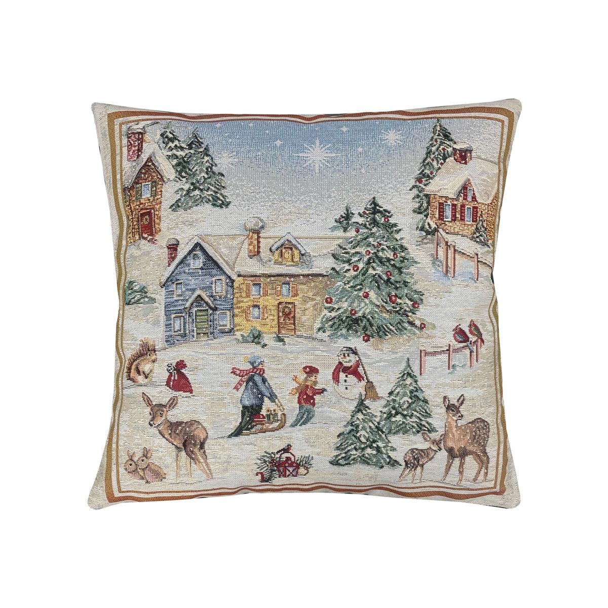 Add comfort and style to your space with this Winter Scene Tapestry Cushion. This plush cushion features a classic winter scene design and is perfect for your bed or sofa. Versatile and stylish, it's ideal for lounging or adding a decorative touch to your space.