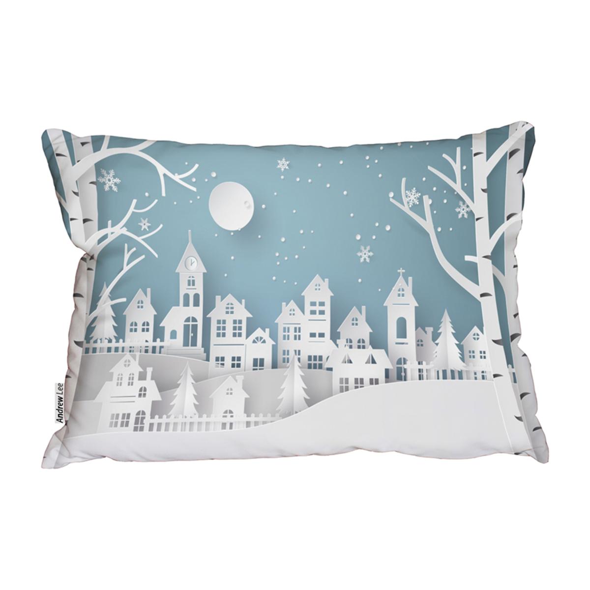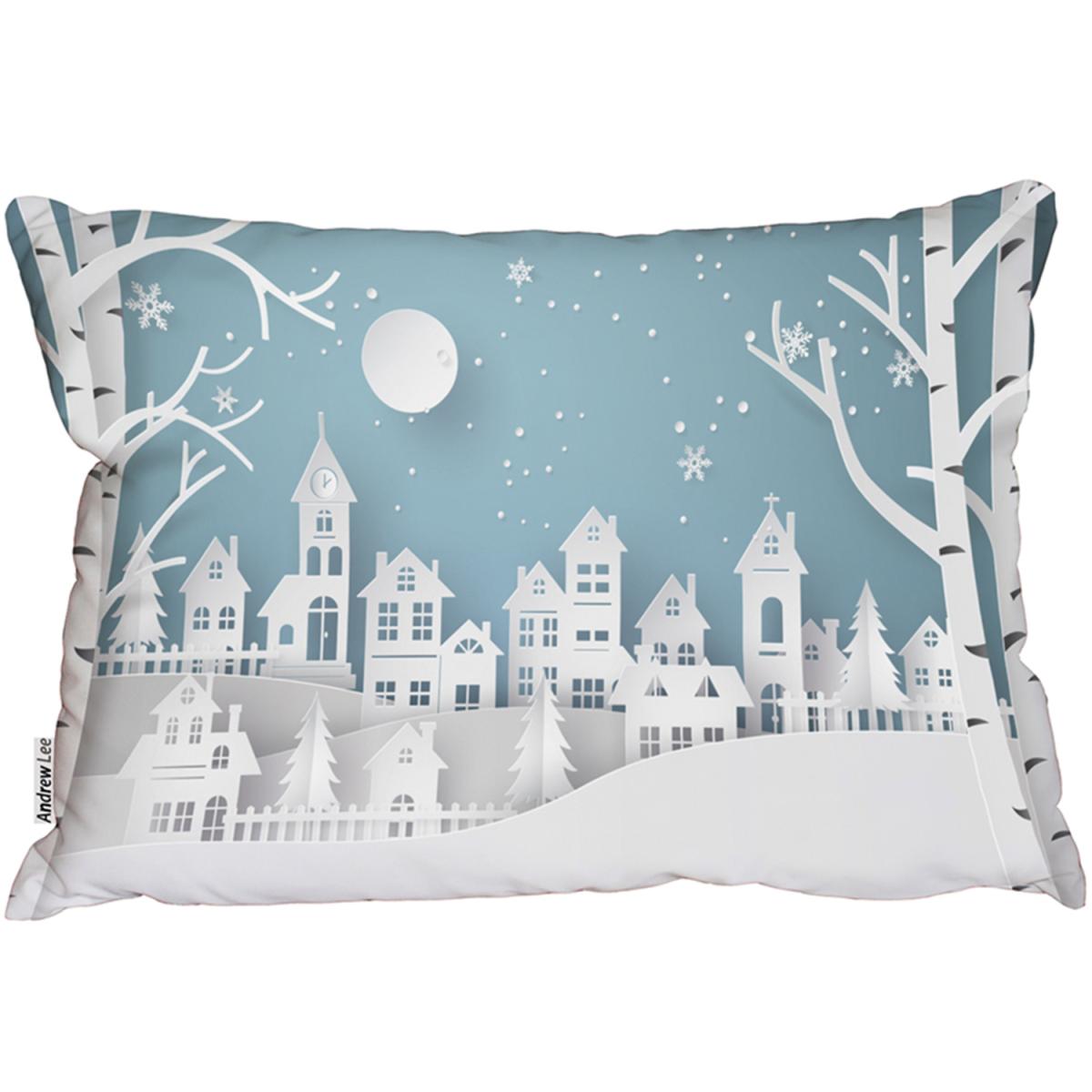 Winter Snow Urban Countryside Outdoor Comfy Cushion - Blue