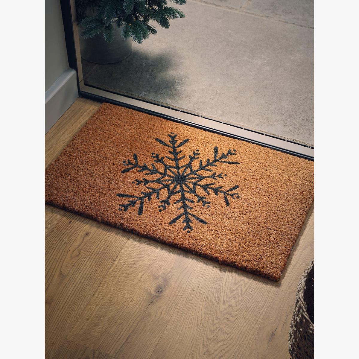Prevent mess and muddy footprints from entering your home with our seasonal snowflake doormat. Crafted from natural coir, this doormat features a festive snowflake design, perfect for providing a joyful and merry entrance to your home this Christmas.