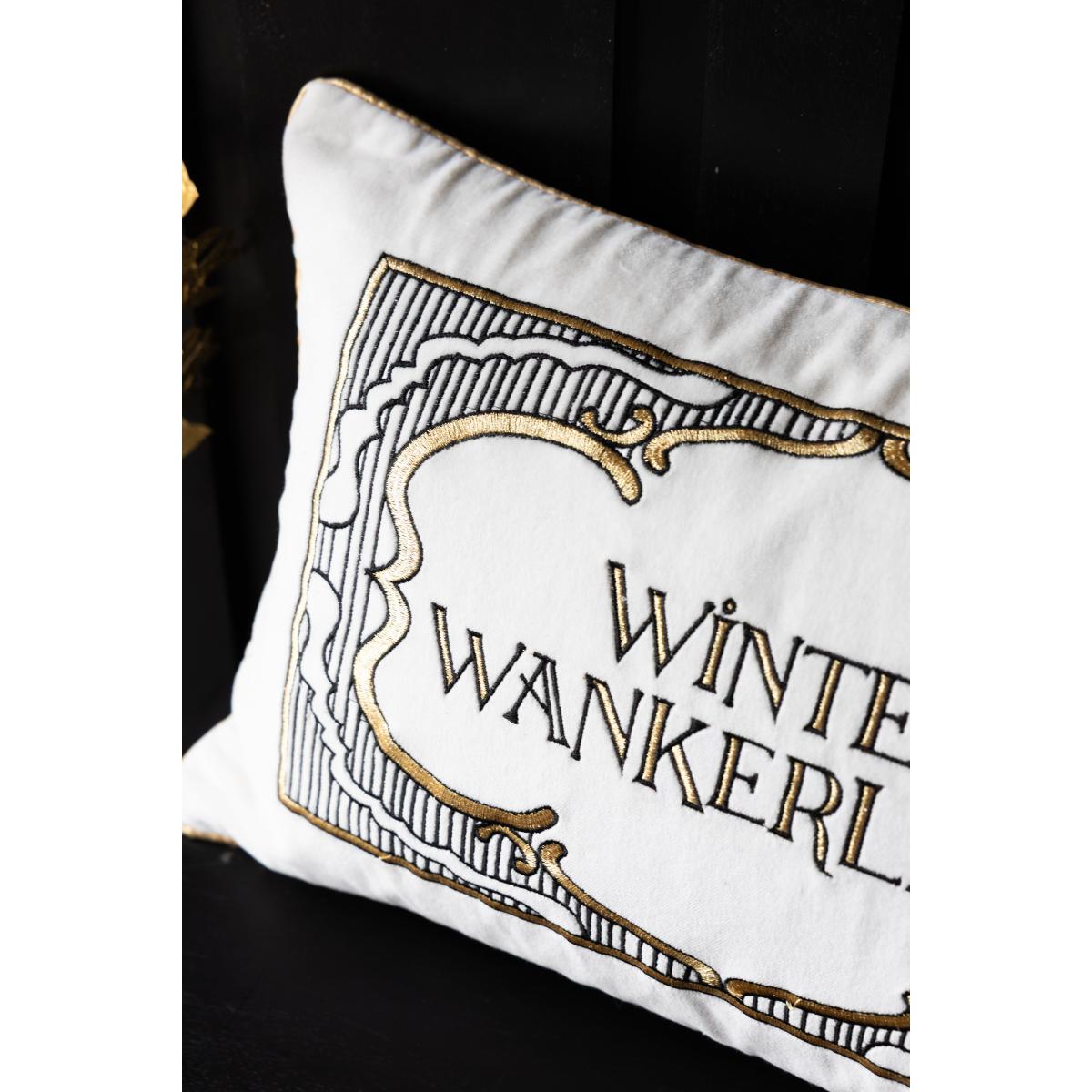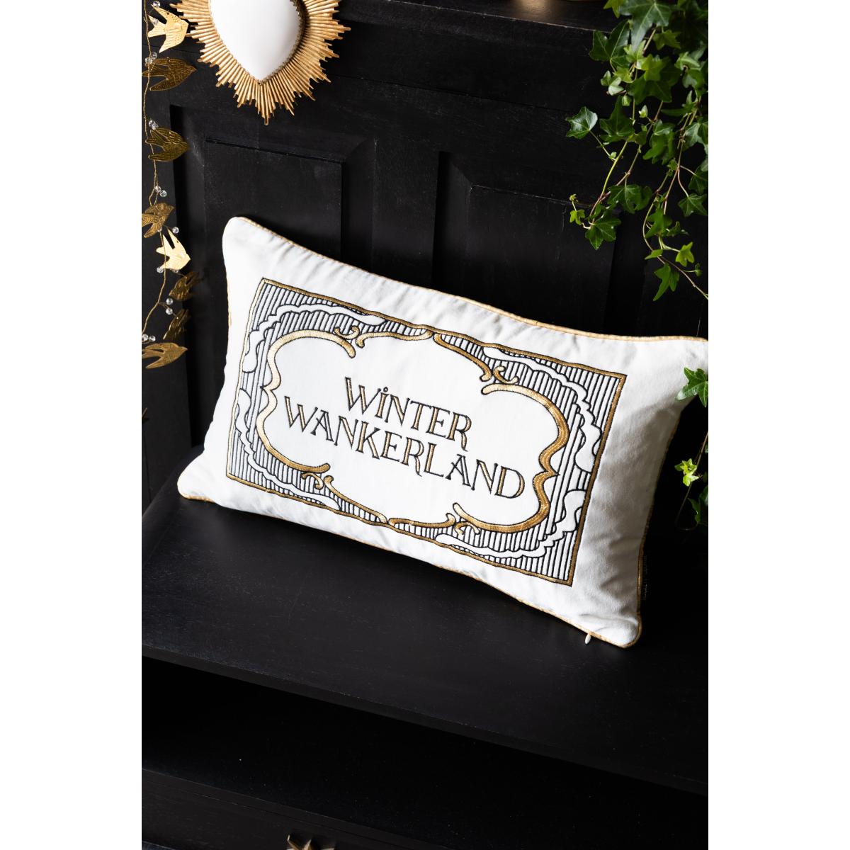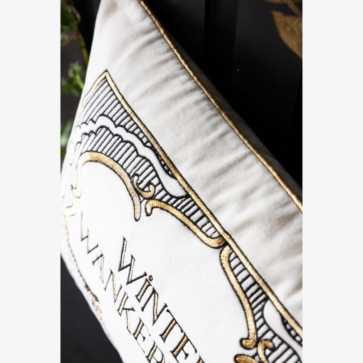 Gold. Inappropriate. Perfect. Who says festive can't be funny? The Winter Wankerland Cushion is your new favourite Christmas decoration, a perfect blend of classy and cheeky. Crafted from luscious velvet white fabric and finished with shimmering gold accents, this gloriously inappropriate Christmas cushion brings just the right amount of sass to your seasonal styling. With its elegant, vintage-style border and regal font, it almost looks sophisticated… until you read it properly. Whether you need a new sofa cushion, to shake up your existing soft furnishings or a cheeky addition to a favourite armchair, this cushion is the ultimate gag gift for a naughty friend. Guaranteed to get laughs, inspire double-takes and possibly a raised eyebrow or two, we're sure you'll agree that Christmas is way more fun with a little profanity. - Winter Wankerland Cushion - Measures: H50cm x H30cm - Materials: Velvet & Gold Lurex Thread - Wipe clean with a dry cloth only