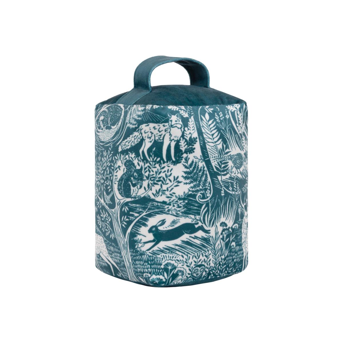 Invite nature into your home with the Winter Woods doorstop. Featuring a stunning woodblock inspired print which depicts the beauty of forest animals and trees. Printed on soft velvet, this amazing design highlights the best of British forests and is a charming way to keep your door open. The complementing reverse and storage handle are made of velvet to add further warmth to this piece and is available in a range of bold jewel tones.