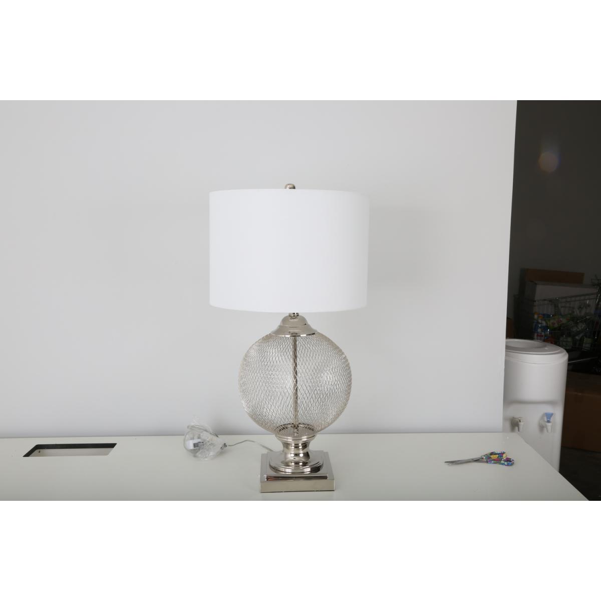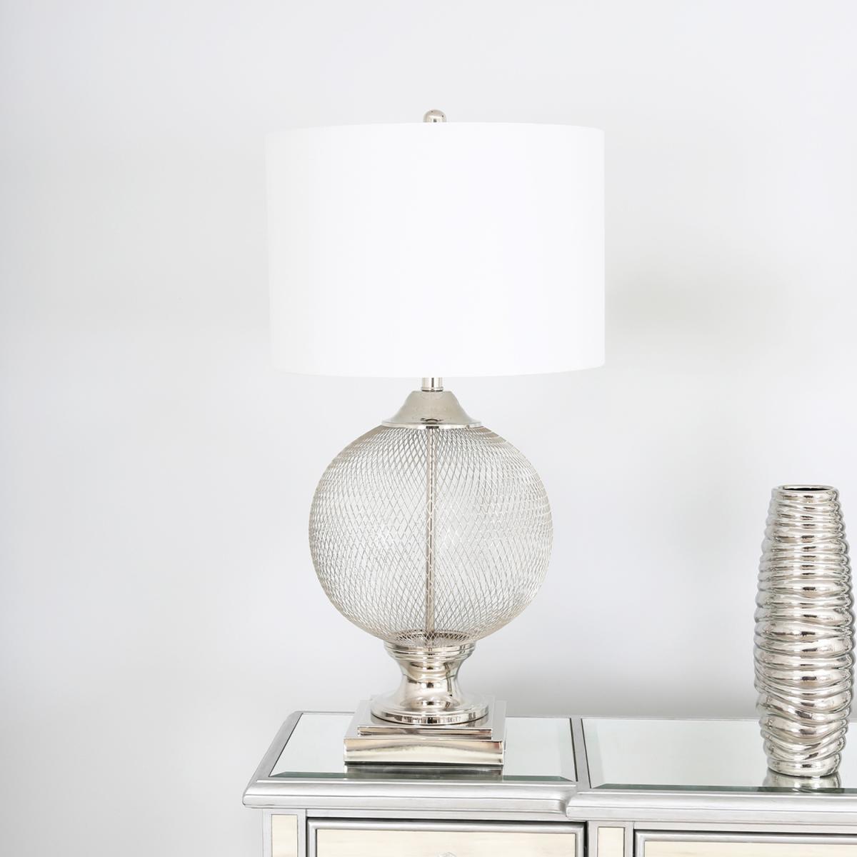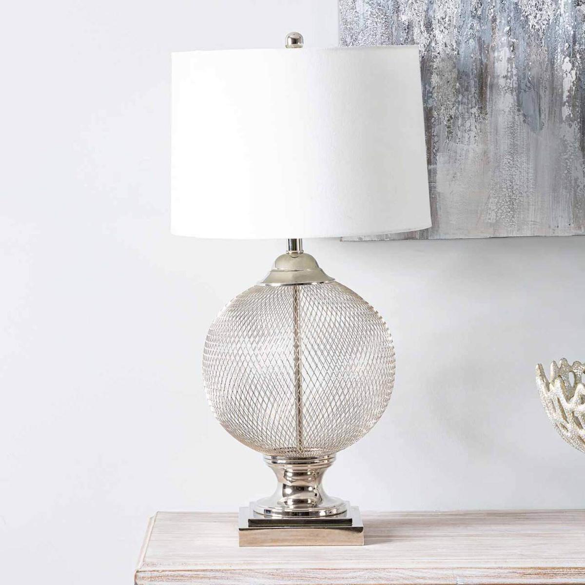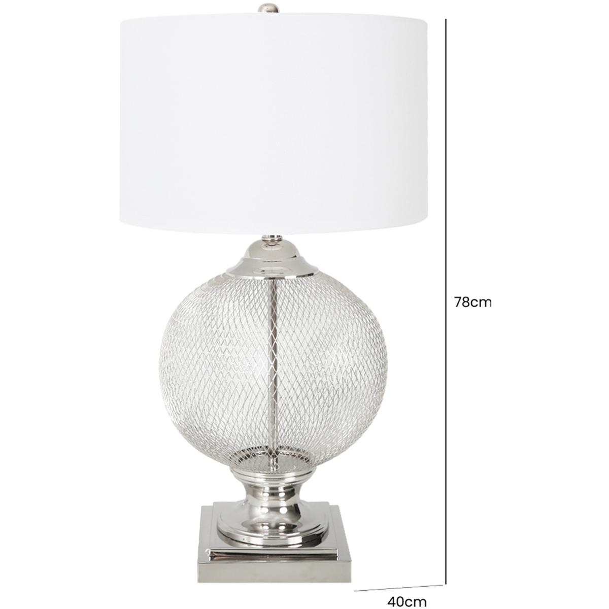 78cm Wire Mesh Table Lamp With White Linen Shade. This product comes with a UK EU Dual Plug.