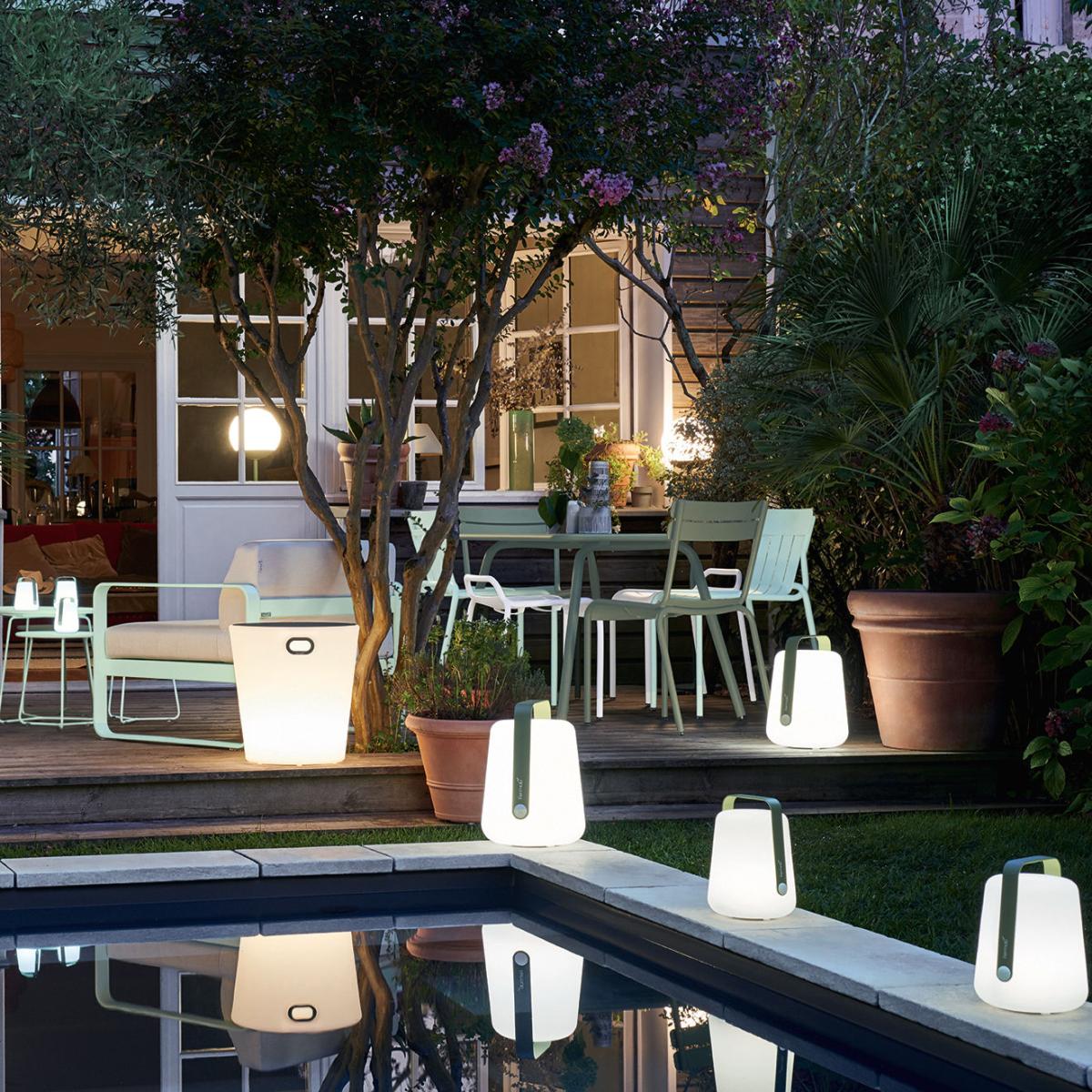 Fermob is making a remarkable entrance into the outdoor lighting world with its Balad lamp designed by Tristan Lohner. Joyous and colourful, this cordless lamp appeals both due to its modern look and its modest price. Suitable for outdoor use, it’s a real mobile product you can move around as you like, from the house to the garden, or the beach to the campsite. It can become a small ambient light in your living room or entrance, and is ideal as a night light in a child’s bedroom (it doesn’t heat up). In your garden or on your terrace, it’s perfect to create a wonderful ambient light during your meals and evenings outdoors. With a metal handle, it's easy to carry or hang (on a hook or tree branch, etc.). This cordless lamp can be recharged via a standard USB cable (included). It offers up to 14 hours’ battery life. The pressure button located on the handle not only lets you choose the intensity of the light but also its temperature (warm or cold light). These two temperatures create two different lighting moods: the "warm white’" lighting (yellow hue) is very warm, while the "cold white" lighting (blue hue) shows the surrounding colours with greater precision. This lamp is equipped with a Dim'up function: it gradually lights up so as not to dazzle the user. 3 lighting options by pressing the button: -1 press = 100% cold white light - 2 presses: 100% warm white light - 3 presses: 50% warm white light - 4 presses = OFF - Long press = OFF
