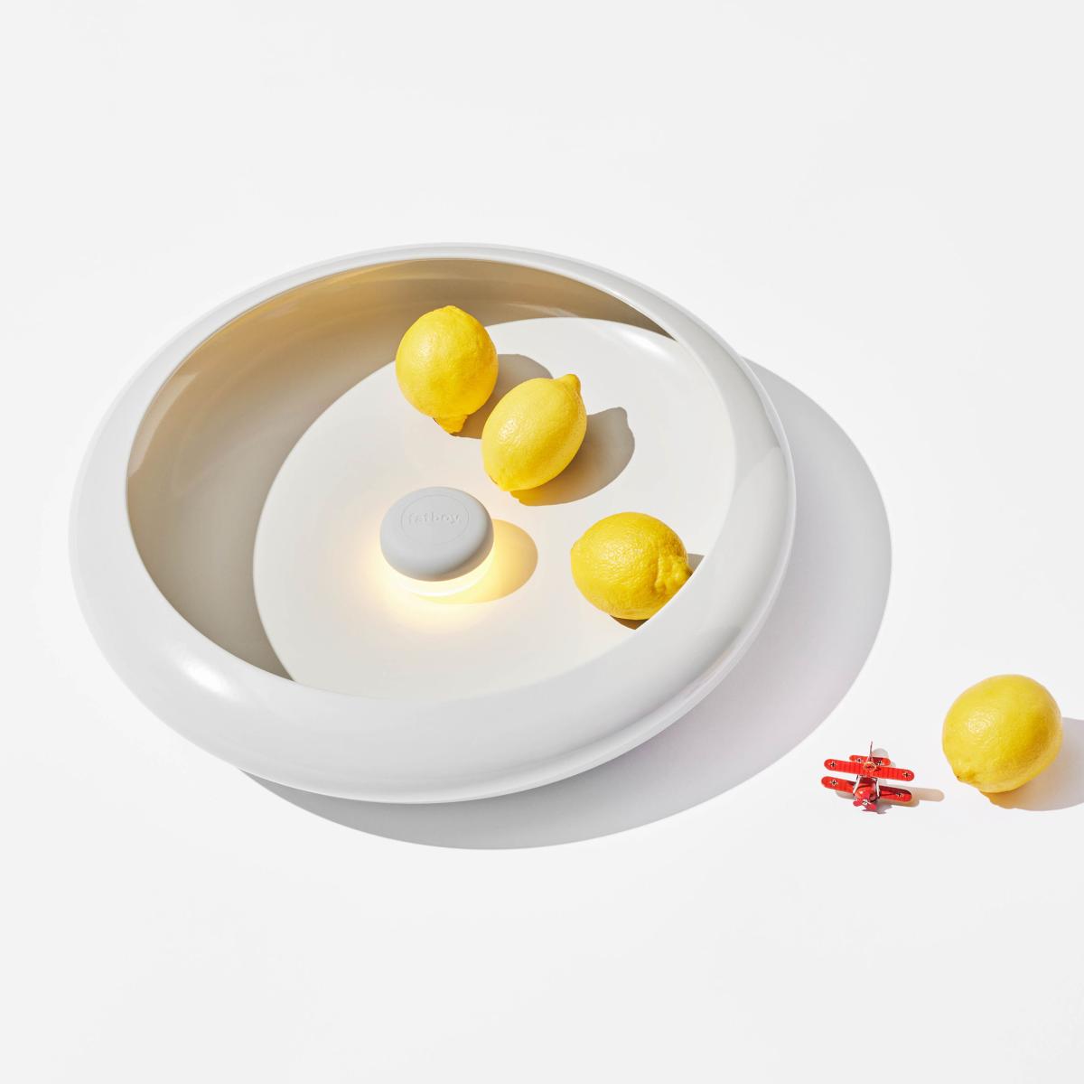 Oloha is a mysterious, multi-faceted, luminous object... Oloha consists of two individual parts: an aluminium bowl inside of which is attached a small, cordless, magnetic LED. The small, cordless, magnetic light can easily be removed for recharging, using the USB-C cable supplied. The magnetic, silicone light is fitted with a touch dimmer: simply press the dimmer to turn on, off or adjust the brightness (stepless dimmer). The cordless Oloha light is weatherproof so you can use it inside or out. The bowl can be placed on a piece of furniture or a table. You can also hang the bowl on a wall: So Oloha then becomes a cordless wall light. With Oloha, anything and everything goes.