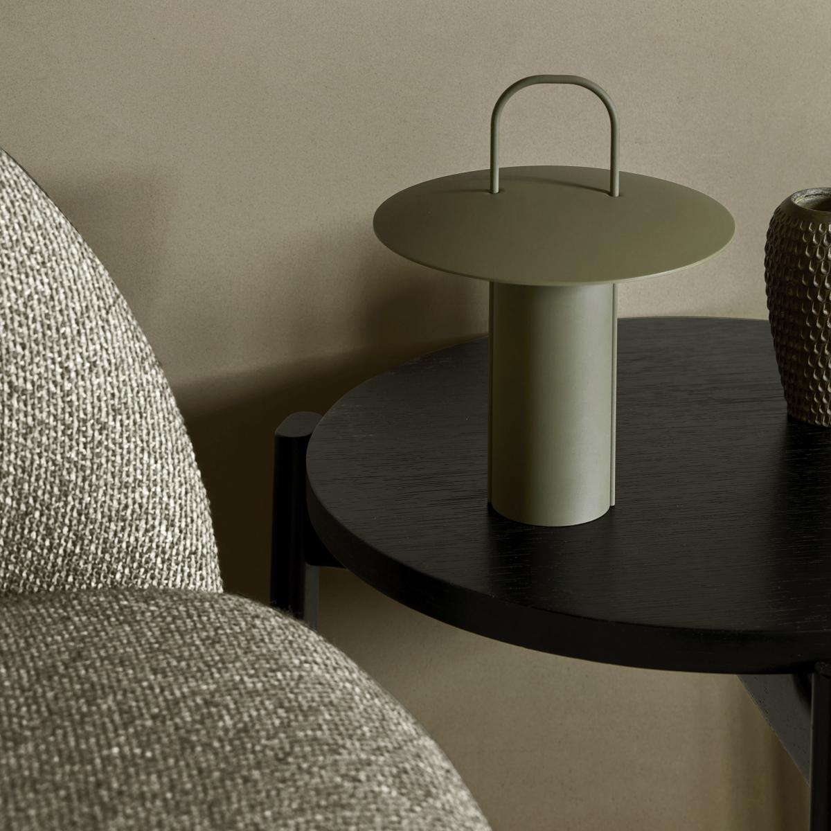 With its distinctive and minimalist silhouette, the Ray cordless lamp is inspired by old miners' lamps. Made of aluminium, it can be used indoors and out. The large upper handle means it's easy to move the shelf from the living room to the dining table. This is a perfectly portable piece that can be moved whenever and to wherever you wish. The brightness can be varied to three levels. This cordless lamp has an integrated battery that can be recharged via USB (charging cable included). Once recharged, it casts a soft light for up to 30 hours. To preserve the battery's life span, switch the lamp off when charging and don't leave it plugged in during use.
