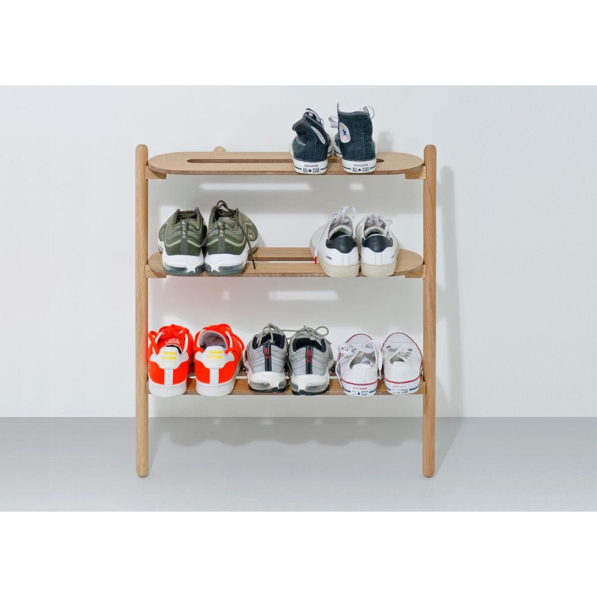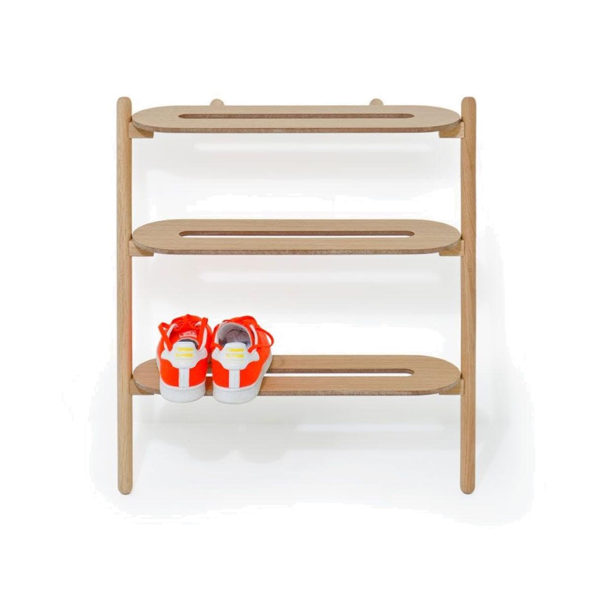 I’m a fan of the Wireworks “heel bar” shoe tidy in oak because it keeps footwear neatly displayed without bulky cupboards. Its slim profile and natural wood finish slot straight into Scandi-inspired hallways, minimalist flats or even pared-back country cottages. For styling, place it against a pale wall and add a simple mat underneath to catch debris. Arrange shoes by height or colour to keep the look ordered, and top it with a small dish for keys or a single plant pot to soften the lines. It’s practical, space-efficient and suits any interior that values clean lines and easy access to your everyday pairs.