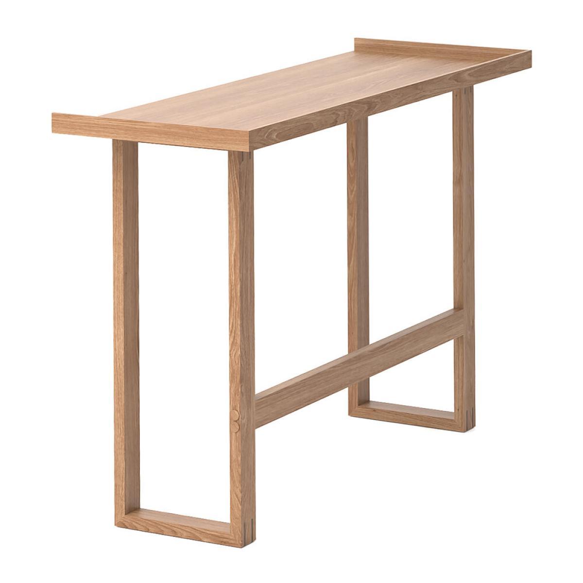I love this slim table for its clean lines and understated elegance, making it a versatile choice that works well in both modern and minimalistic interiors. Its oak finish adds a touch of warmth and natural texture, perfect for creating a calming workspace. I recommend pairing it with sleek, contemporary accessories or soft textiles like a cosy cushion or rug to soften the look. It's ideal for smaller spaces or as a dedicated writing nook in a home office, but also adaptable to a dining or craft table with the right styling. Keep the surface clutter-free to highlight its slim profile and let the wood's natural beauty shine through.