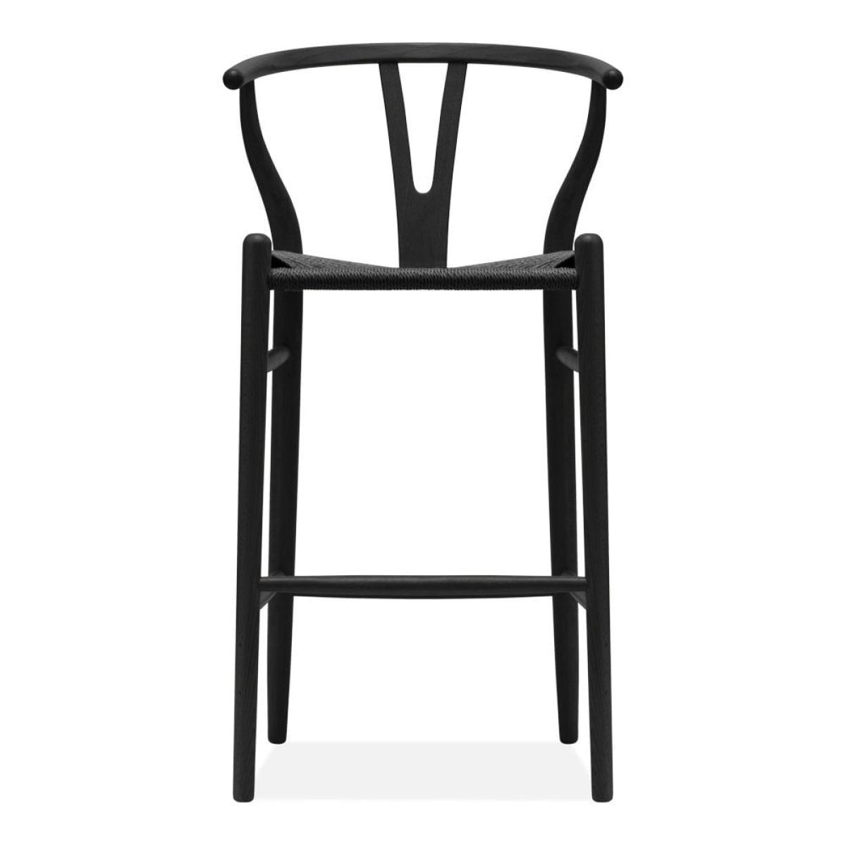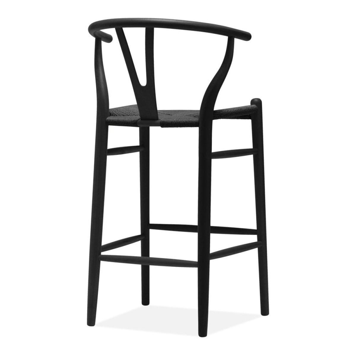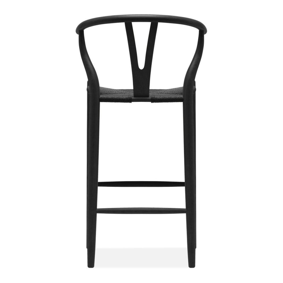 The Wish Bar Stool; perfect for any breakfast bar or kitchen. This Scandic design is practical, contemporary, and stylish, with black weave seat and black-stained wooden frame. The curved 'Y' shaped back in black beech wood and natural paper cord black seat showcases Scandi style without compromising comfort. View The Wish Range