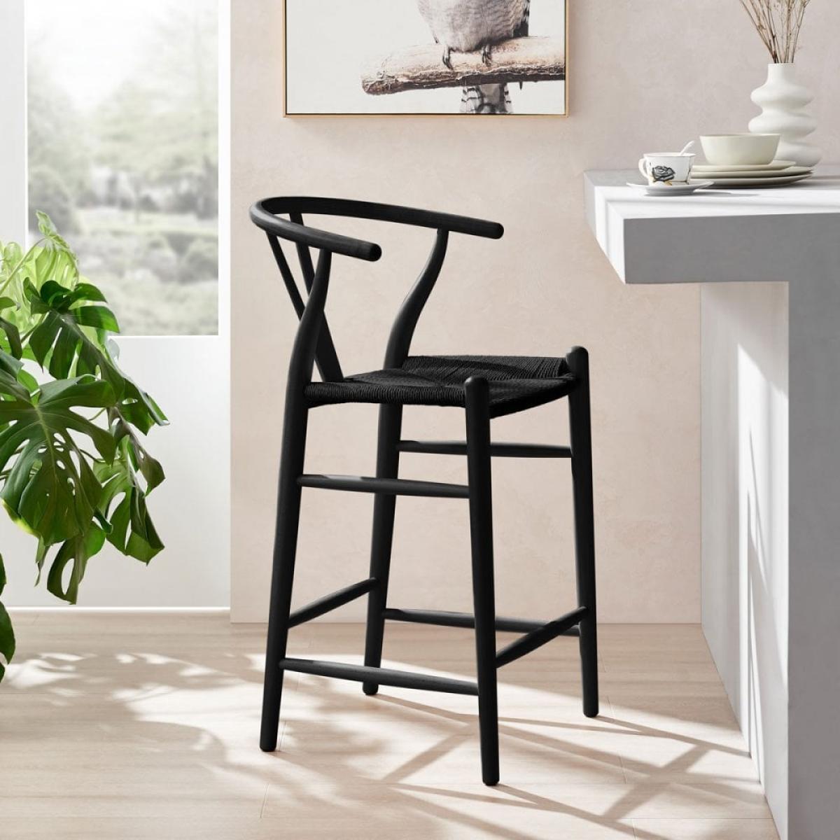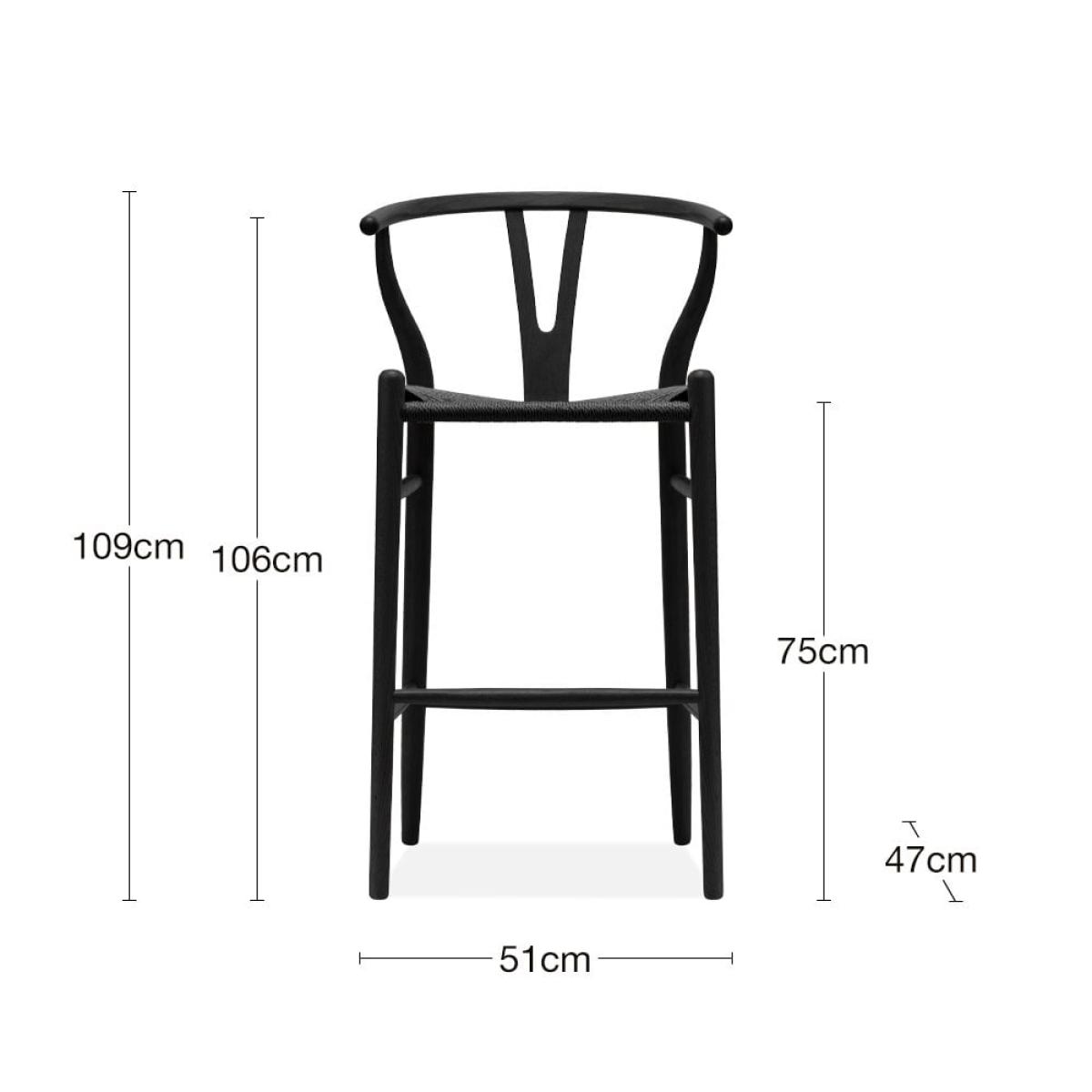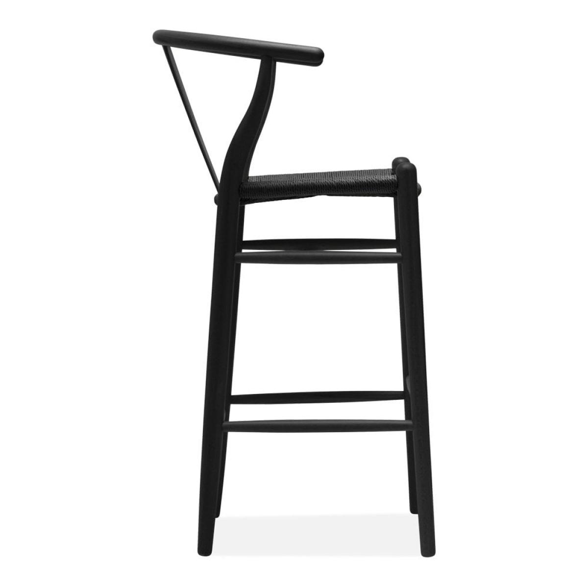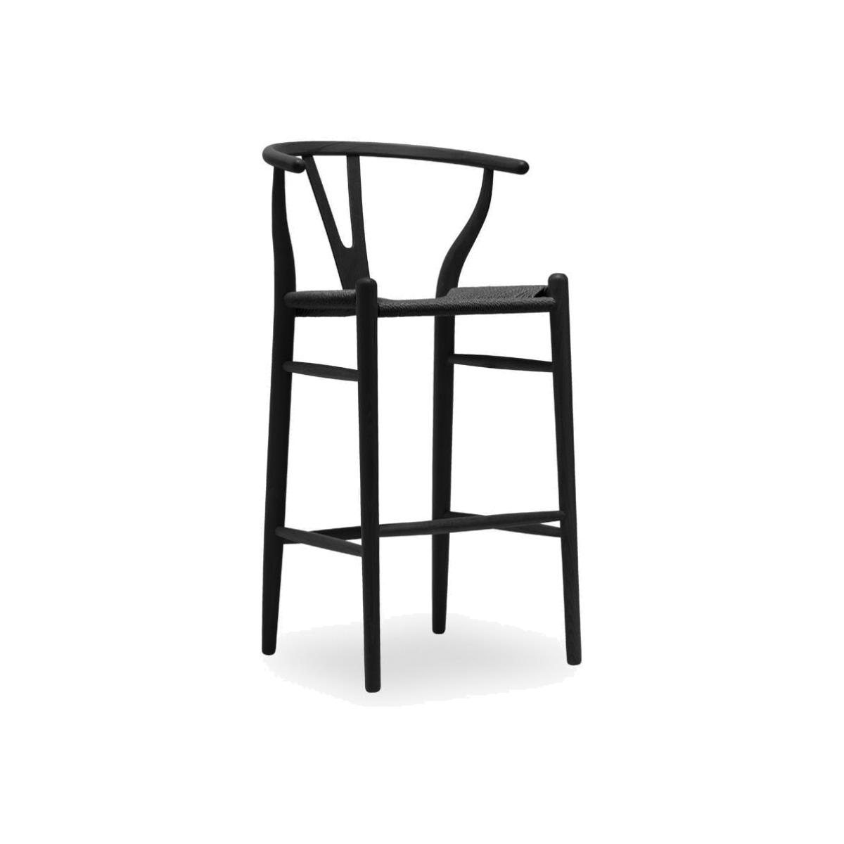 The Wish Bar Stool; perfect for any breakfast bar or kitchen. This Scandic design is practical, contemporary, and stylish, with black weave seat and black-stained wooden frame. The curved 'Y' shaped back in black beech wood and natural paper cord black seat showcases Scandi style without compromising comfort. View The Wish Range