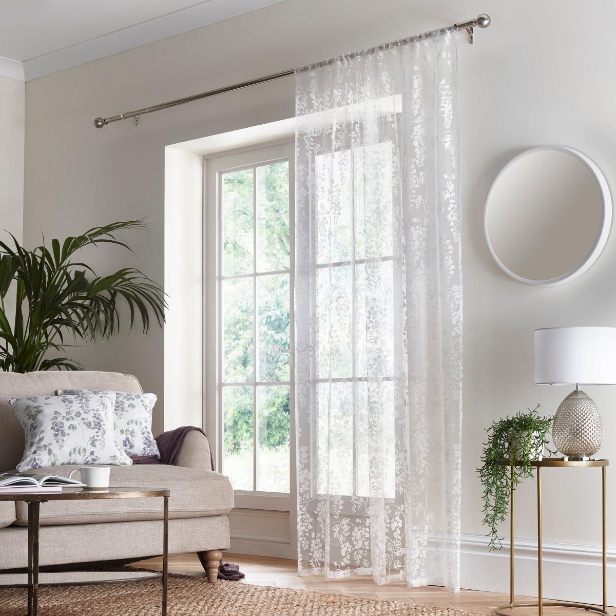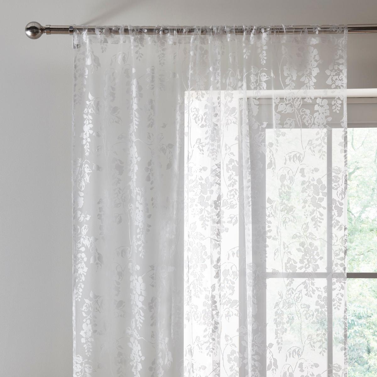 This voile style is the perfect finishing touch to any room in your home. The elegant burnout design gives an airy and light feel to your room, while the sheer fabric keeps you cool in summer. The stylish white colourway makes this voile easy to pair with other items in your home. And its machine washable and easy to hang!. Please note: Due to the nature of this design, it may not be possible to pattern match across multiple purchases.