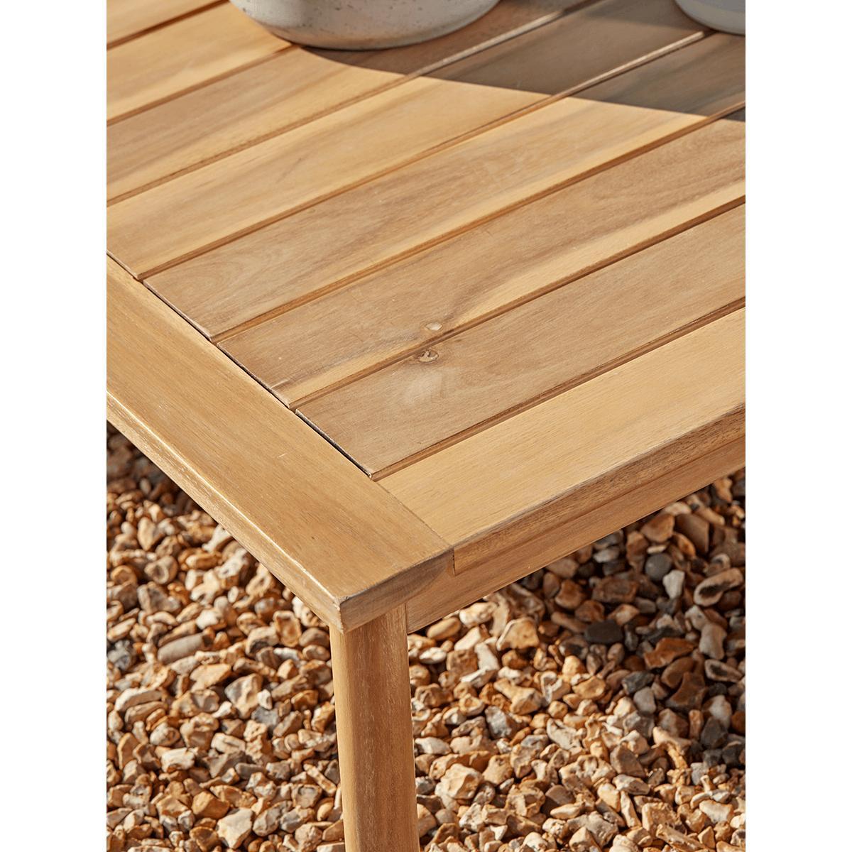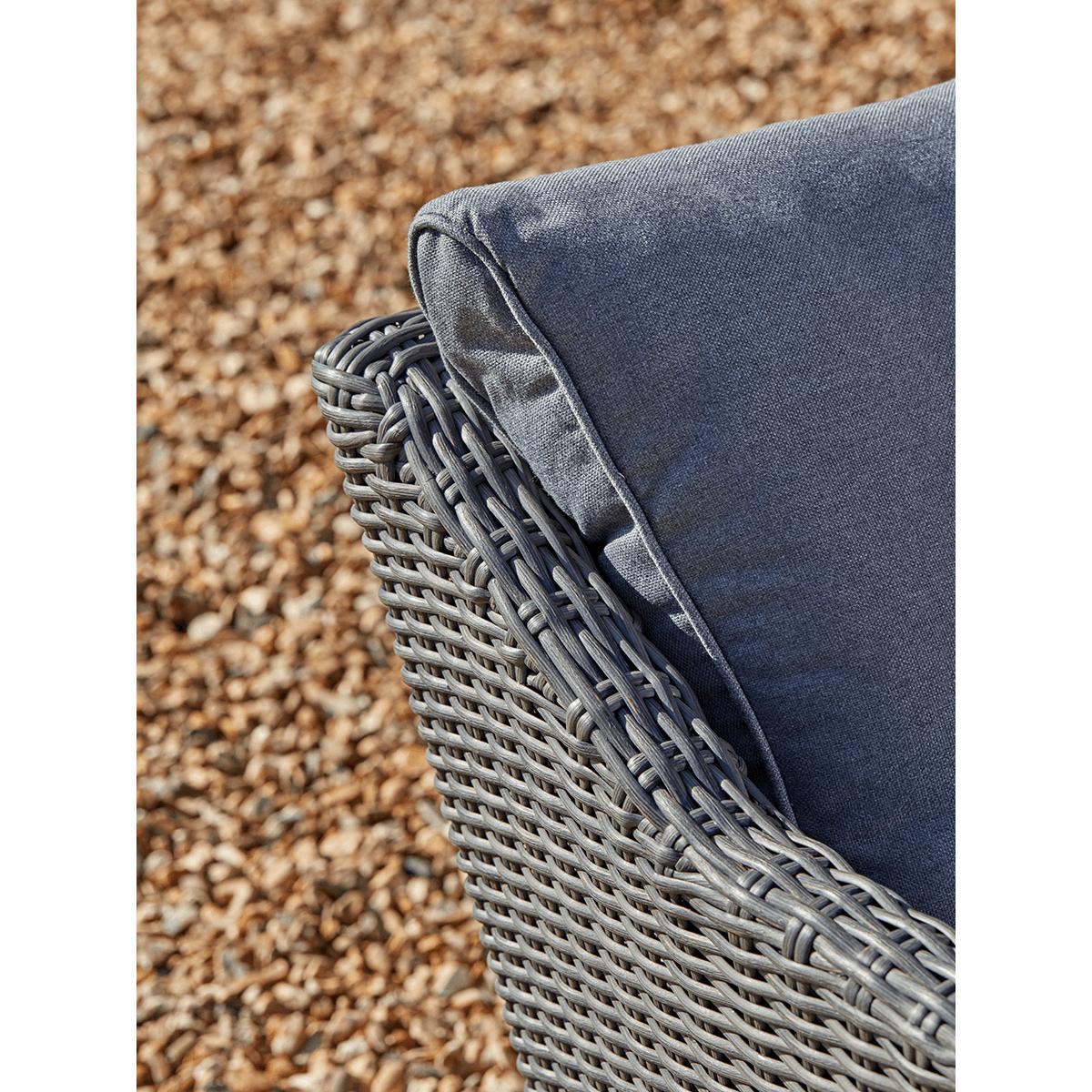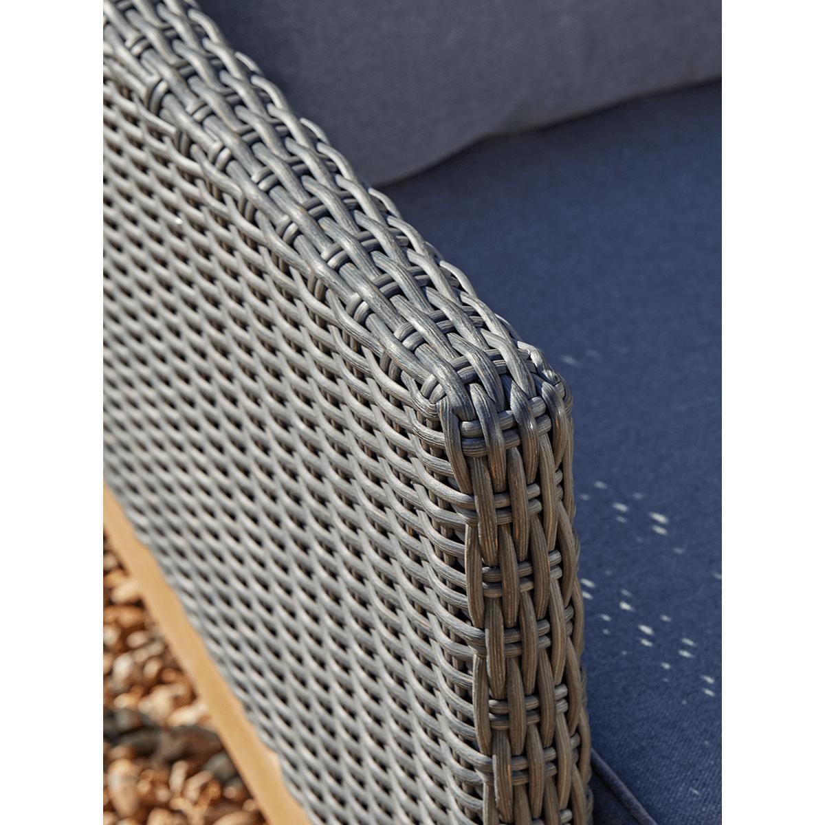 Made from weatherproof faux wicker and pale acacia wood, our attractive outdoor lounge set is the ultimate lounging solution for whiling away the hours outdoors. Each set includes a coffee table and a sofa and two chairs - with both a cosy seat and back rest cushion to each seat, in a stylish soft grey.
