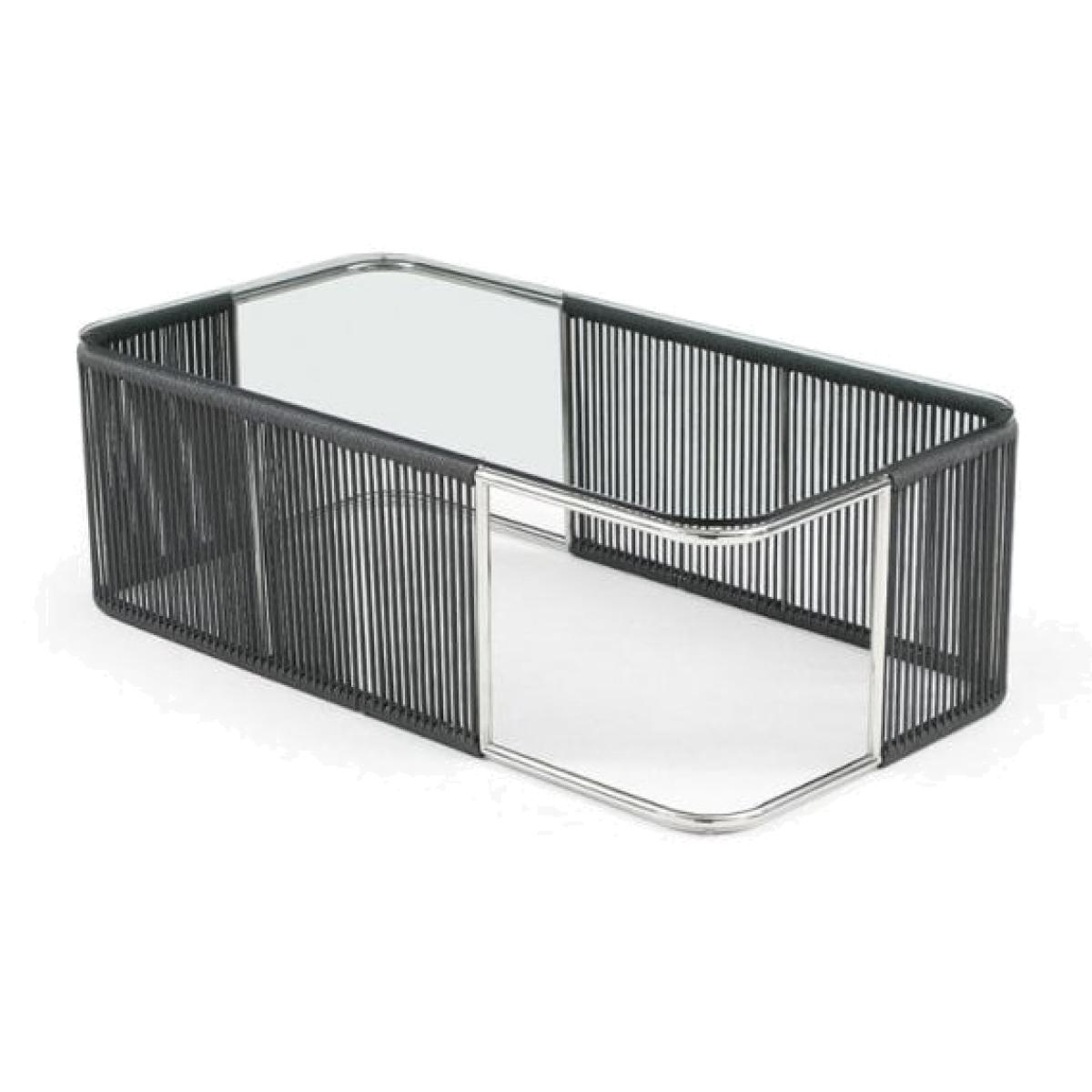 This Witten Coffee Table - Polished Stainless Steel and Grey Rope was formed as an attempt to bring the outside in. Modern sophistication meets relaxed texture in the Witten Coffee Table. Crafted with a sleek polished stainless steel frame and accented by expertly woven grey rope, this piece strikes a perfect balance between industrial edge and coastal calm. The open, airy design adds visual interest without overwhelming the space, making it an ideal centrepiece for contemporary living rooms. Whether styled with books, a decorative tray, or left minimal, the Witten brings refined texture and modern character to your home. Features: Glass Coffee Table Clear glass (toughened) Grey bungee rope Stainless metal frame Dimensions: Height 42cm Depth 65cm Width 125cm All screens vary in colour reproduction and whilst every effort has been made to display the colour as accurately as possible it is for guidance only.