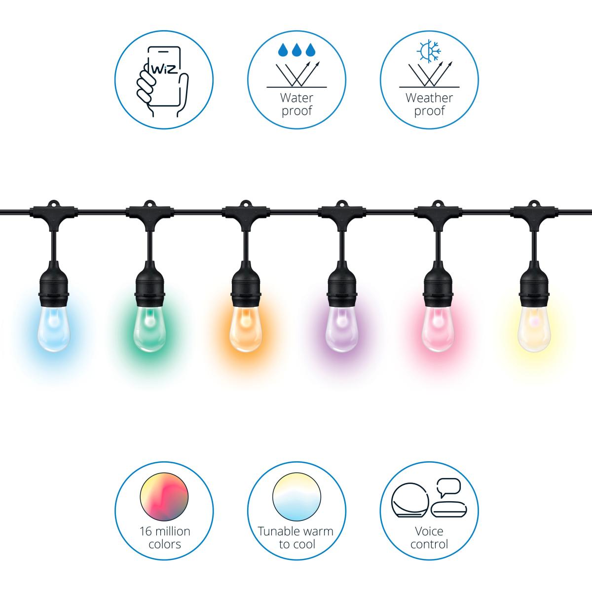Bring your outdoor spaces to life with these dynamic, multicoloured festoon lights. Illuminate your garden with millions of colour options and dynamic modes, all at the touch of a button. Feel safe and secure with fully automated lighting, powered by low-voltage technology that's easy to install and safe to use. Create the perfect ambience for any occasion, with the ability to set your ideal light scene from anywhere, using your smart home setup. Instantly elevate the look and feel of your outdoor spaces with these innovative, energy-efficient string lights. Smart Features: Experience the advanced technology of Philips' smart lighting system with Bluetooth and Zigbee compatibility. Enjoy the ability to choose from over 16 million colours to perfectly match your mood and style. With the convenience of being able to control your lights from anywhere, you have complete control over your home lighting, even when you're not there. Create groups to control multiple lights at once, giving you the ability to set the perfect ambiance in your entire home with just a few taps on your smart device. Whether you want to turn all the lights off, or adjust the brightness in your living room, you can do it all with ease using your smartphone or tablet.