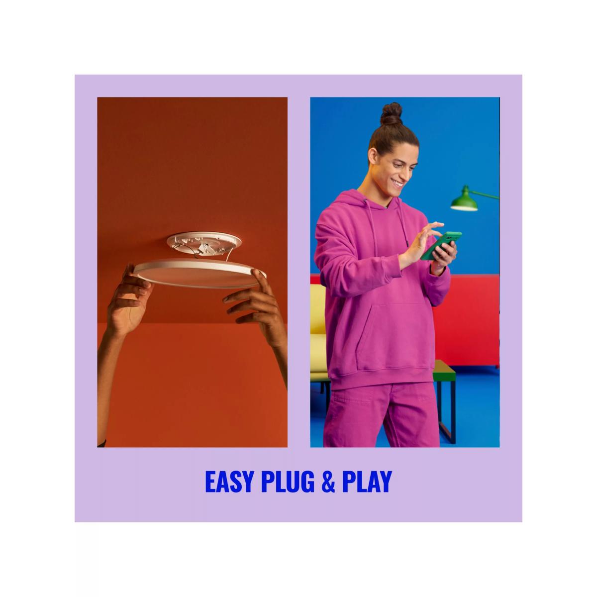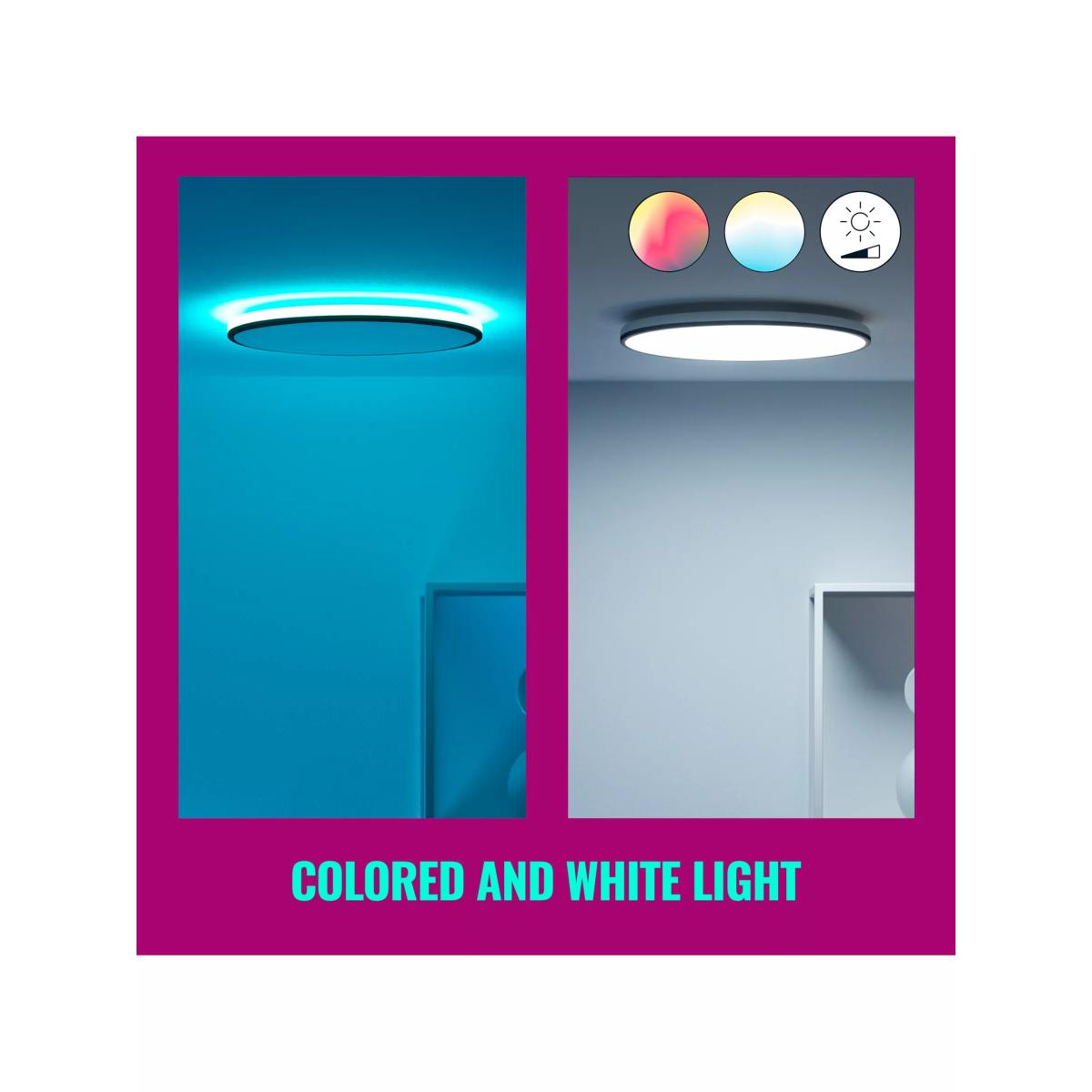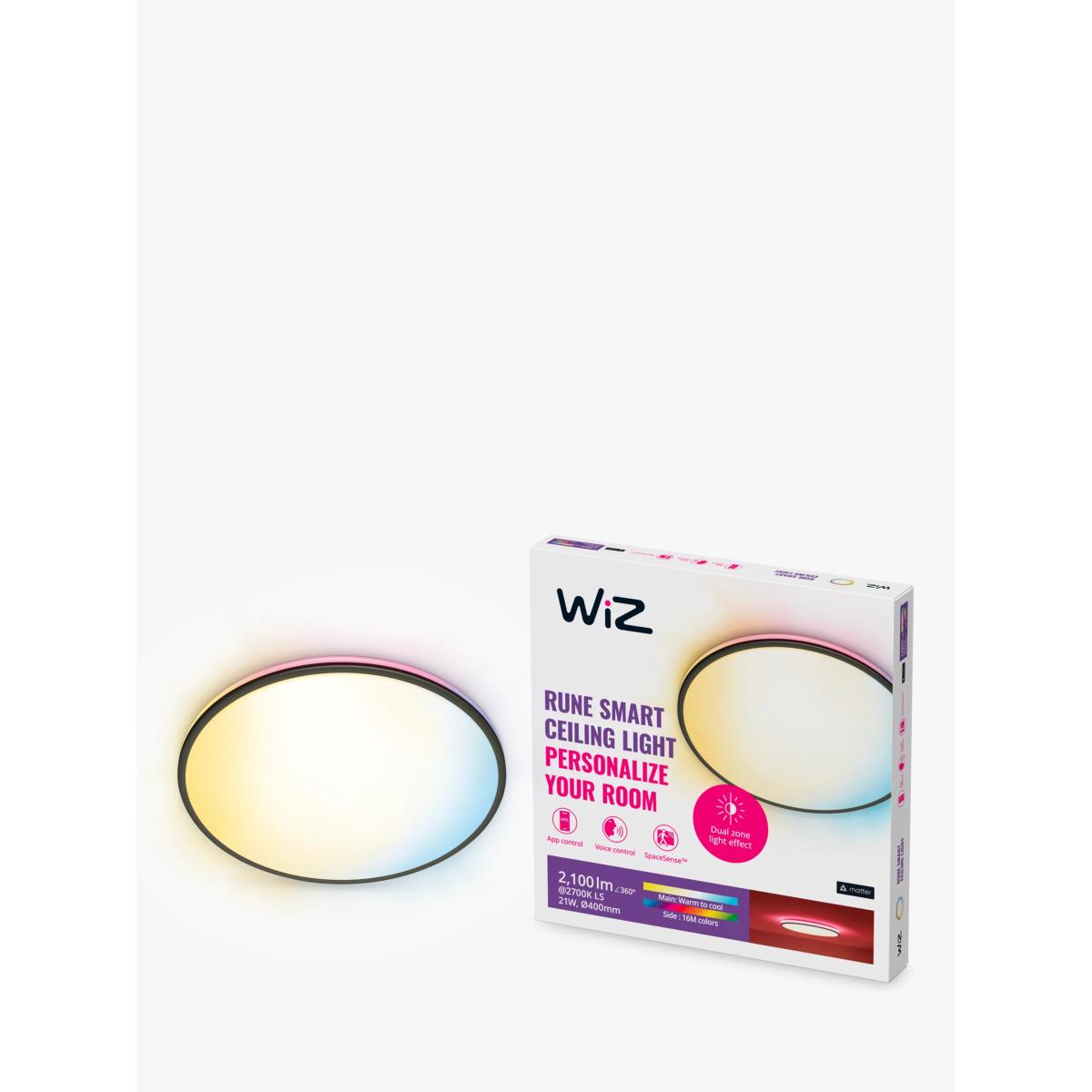 Experience a hover-like lighting effect and dynamic colour combinations with the Rune LED ceiling light. Decide your own vibe by using the centre zone to choose cool bright, or warm ambient white light. For a pleasant surprise every time, select the ring of full-colour light.