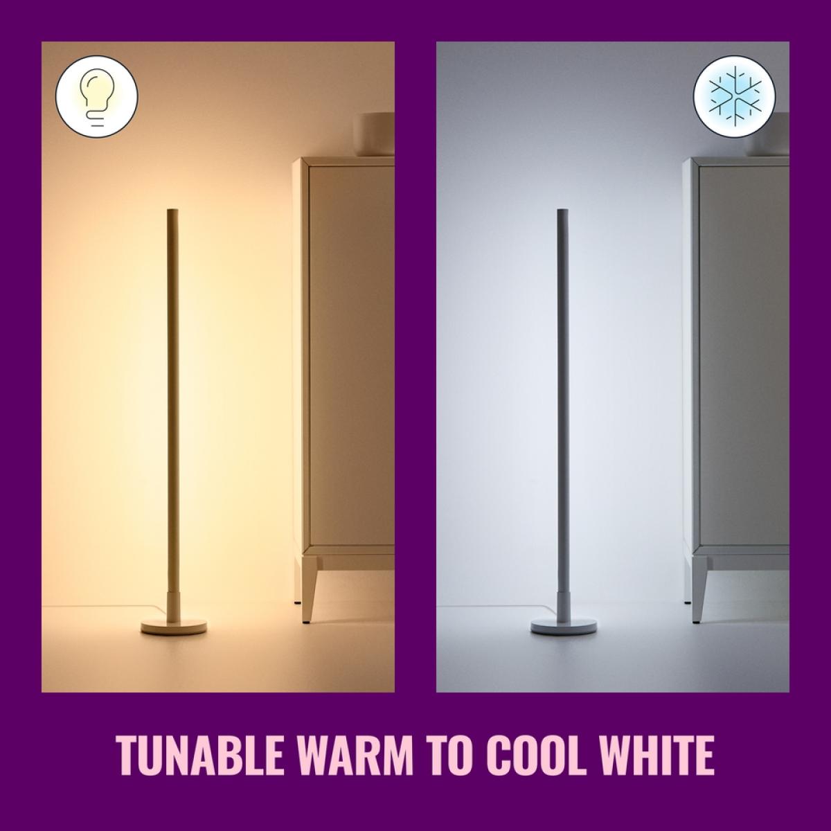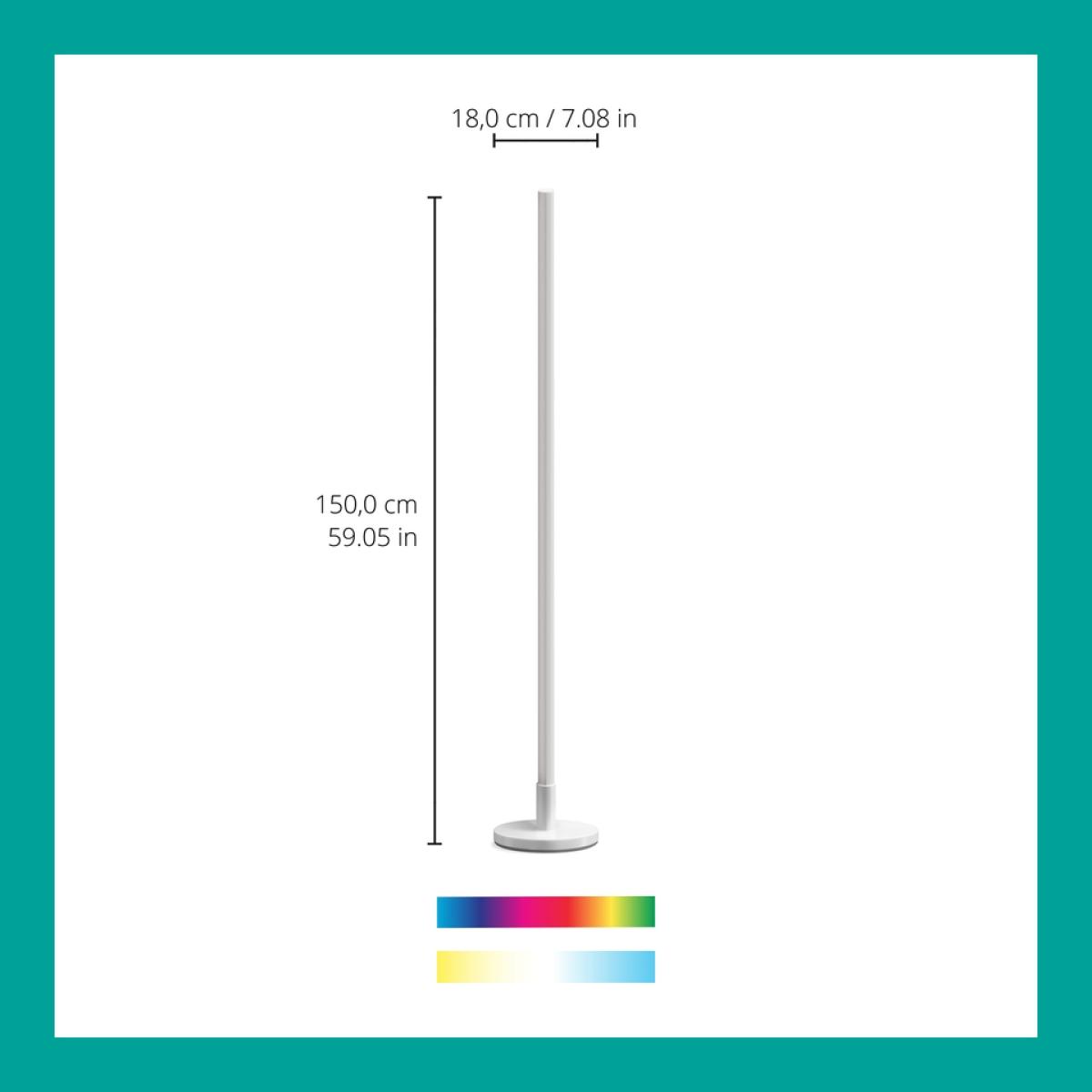 Enjoy coloured, wide-angle wall-wash effects with this Pole LED floor light. Standing tall, it creates ambience thanks to dual zone lighting producing a soft, gradient light. Create a rainbow of colour combinations that extend the ambience. Simply set the upper and lower parts of the lamp to emit different colours.