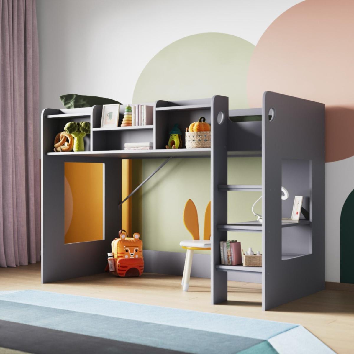 I really like this junior high sleeper bed frame in grey because of its practical, modern design that packs in thoughtful details suitable for contemporary children’s rooms. It’s versatile enough to work in a variety of interior styles, from Scandi-inspired minimalism to playful, colourful spaces. The integrated shelving and storage areas make it easy to keep clutter at bay while creating a neat, organised look. For styling tips, consider adding colourful bins or baskets for extra organisation, alongside vibrant bedding or a patterned rug to inject personality. Growing with your child, this bed’s sleek look offers a calm, functional centrepiece that complements both youthful and more refined décors.