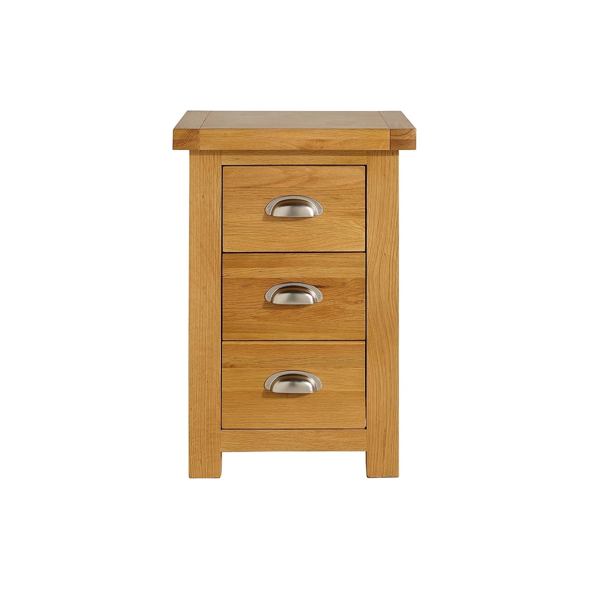 The Woburn Oak Large 3 Drawer Bedside is the ideal spot for a bedside lamp. This large three drawer bedside is practical for separating your items among the three spacious drawers. This Chunky, solid oak range highlights the prominent grain of the wood creating a rustic feel. Providing cup style handles creating versatility within its style, the Woburn is suitable for a wide range of interior schemes. Please note, unfortunately we cannot deliver this item to the Channel Islands.