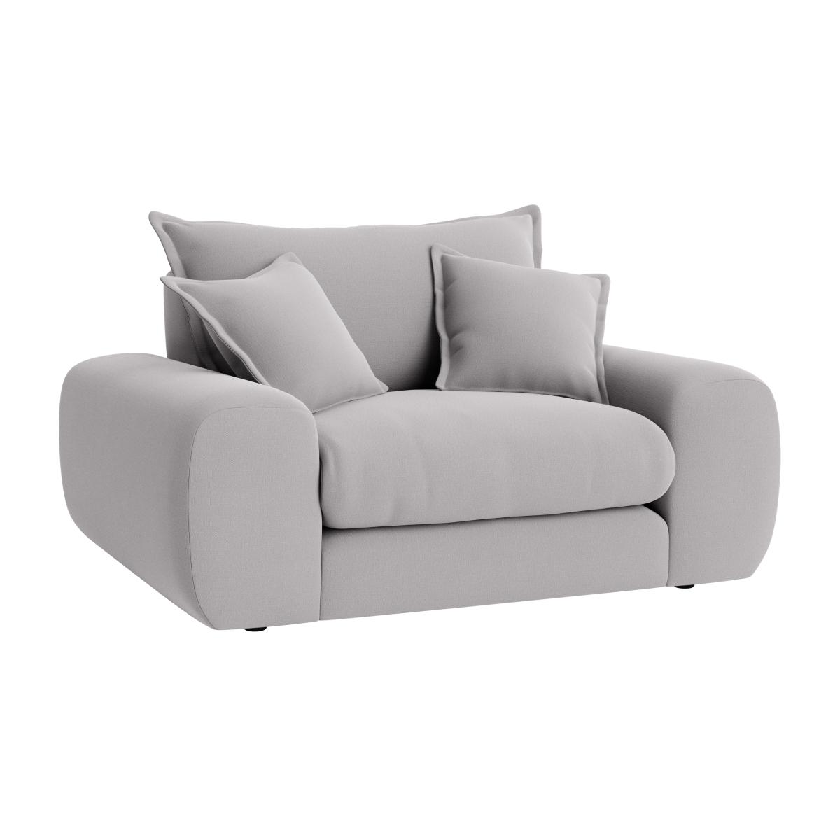 I love this little love seat for its understated yet inviting design, making it versatile across a range of interiors. It works particularly well in cosy living rooms, modern apartments, or even a bedroom seating nook. Its simple, rounded silhouette lends itself to both contemporary and Scandinavian-inspired schemes, especially when styled with soft cushions and throws in contrasting textures or colours to add personality. Practical tips include pairing it with a small side table for convenience, and choosing cushions in different sizes and fabrics to create a layered, welcoming look. Its neutral tone makes it adaptable, allowing you to infuse colour through accessories or artwork without overwhelming the space.