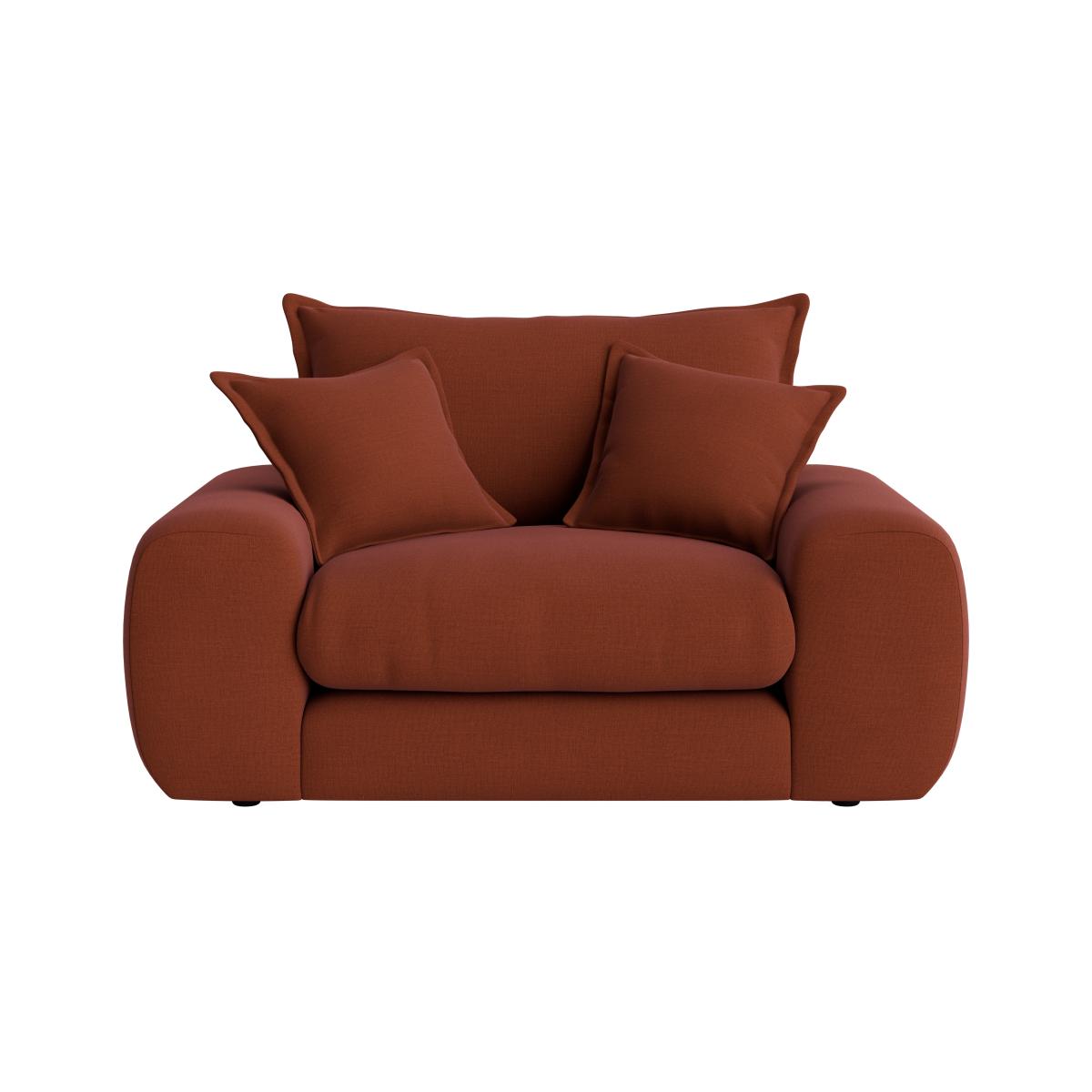 I love the Wodge love seat for its relaxed, plush silhouette that makes it instantly inviting. Its warm, earthy tone works beautifully in both contemporary and mid-century interiors, offering versatility to blend with various colour schemes. To style it effectively, consider pairing with tactile textured cushions and adding a cosy throw to enhance comfort. It’s ideal in small living rooms or cosy corner spaces, and works well with layered rugs and soft lighting to create a welcoming, lived-in vibe. Keep accessories minimal for a clean look, or add a mix of patterns for a more dynamic feel.