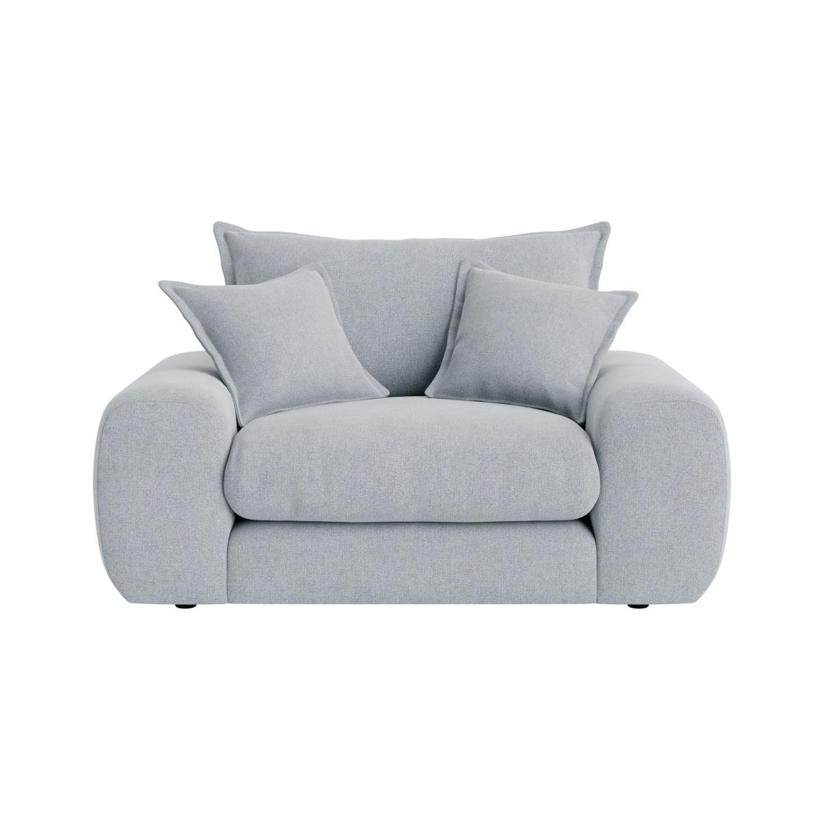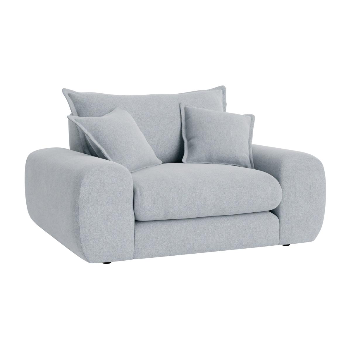 I love the love seat because of its inviting, plush design with slightly exaggerated poufy arms that add a cosy, informal feel. It works exceptionally well in casual interiors, whether paired with soft textures like plush rugs and throws or placed in a relaxed lounge or small living space. For styling, consider layering with mismatched cushions for a personalised look, or contrasting its contemporary shape with more traditional accessories for an eclectic vibe. Its understated colour makes it versatile, so it pairs nicely with both muted and vibrant colour schemes, allowing you to switch up the decor without needing to replace the furniture.