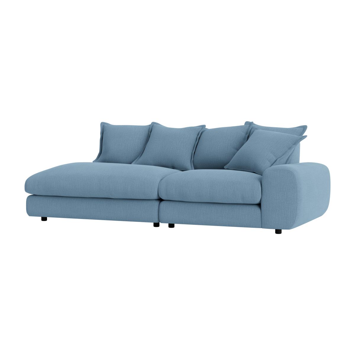 This Wodge modular chaise is a versatile choice that works beautifully in contemporary and casual interiors. I love its clean lines and relaxed silhouette, which make it perfect for creating a comfortable yet stylish lounging area. It's ideal for larger open-plan spaces or family rooms, where flexibility is key - you can reconfigure it with other modules to suit your layout. When styling, consider pairing it with textured throws and an assortment of cushions to soften its modern shape, or layer it with a contrasting rug for added visual interest. Its soft blue tone lends itself well to Scandinavian or modern schemes, but it can also anchor a more eclectic space when paired with patterned accessories or vibrant art pieces.
