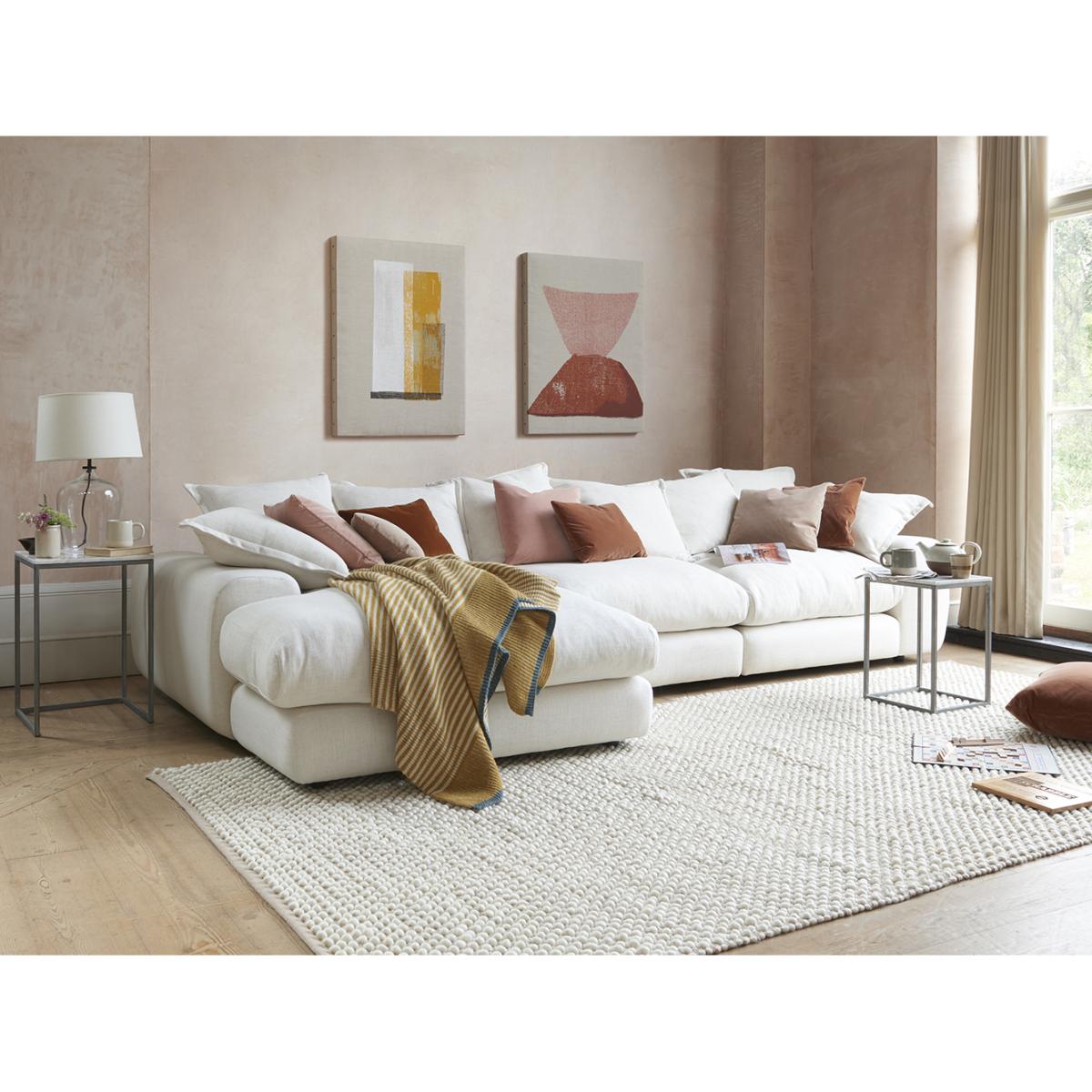 I love this Wodge modular chaise for its versatility and contemporary appeal. It works particularly well in open-plan living spaces or larger rooms where flexibility is key, as you can configure it to suit your layout. Its neutral colour makes it easy to style with various colour palettes, whether you go for bold accessories or keep things minimal. Practical styling tips include layering with textured cushions and throws to add comfort, and pairing it with a statement rug underneath to define the seating area. Its streamlined yet cosy design makes it perfect for both casual family living and more polished, modern interiors.