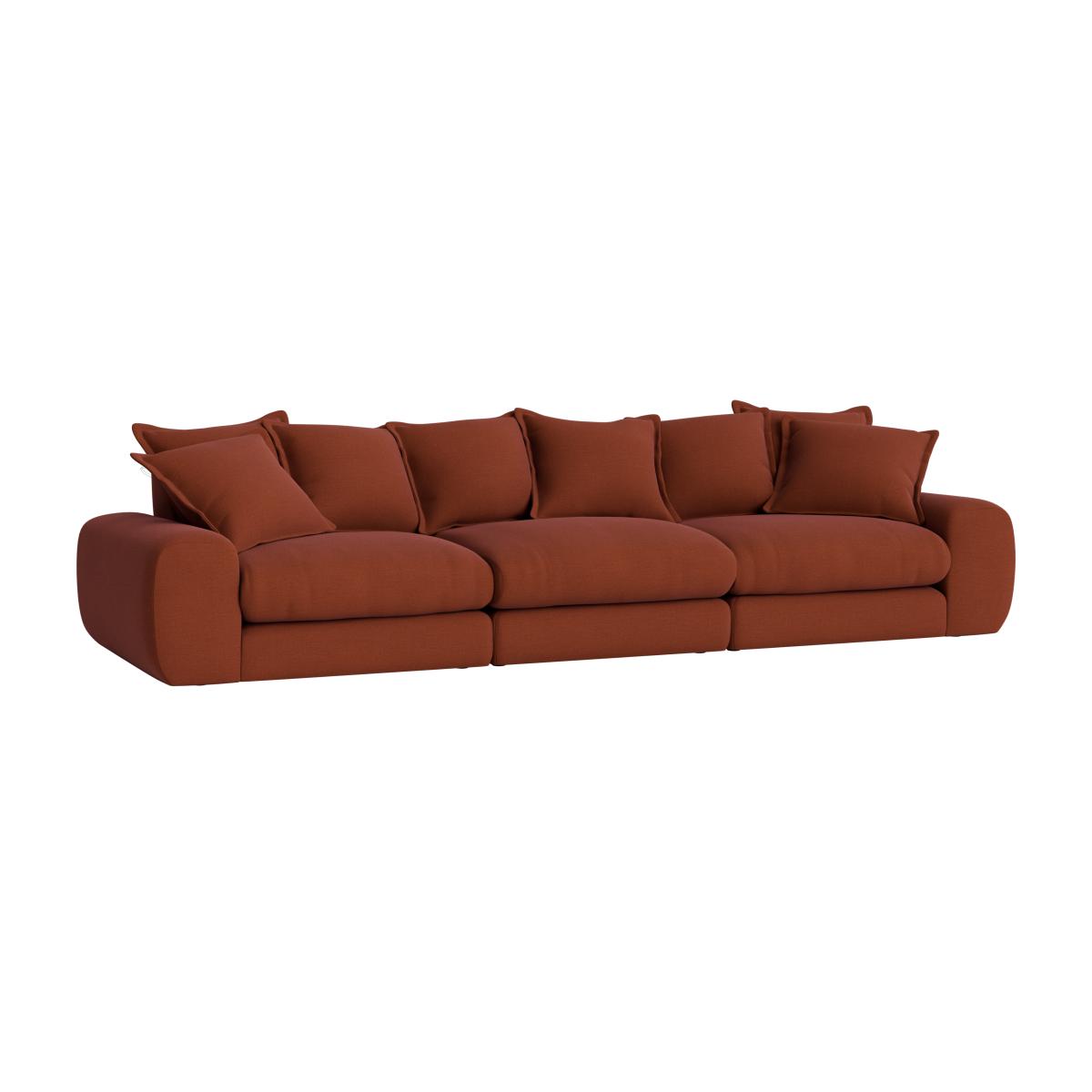 I love the way this Wodge sofa offers flexibility through its modular design, making it perfect for adapting to different spaces and lifestyles. Its warm terracotta tone works especially well in both contemporary and more eclectic interiors, adding a cosy yet stylish touch. For styling tips, try pairing it with textured throws and a mix of cushions in neutral or complementary colours to enhance its inviting vibe. It can work beautifully with a variety of floor coverings, from hardwood to plush rugs, and looks great when paired with clean-lined coffee tables or sideboards for a balanced, lived-in feel. This piece is practical for creating a versatile seating arrangement, whether in a large open-plan living room or a cosy corner, and can be easily configured for guests or everyday lounging.