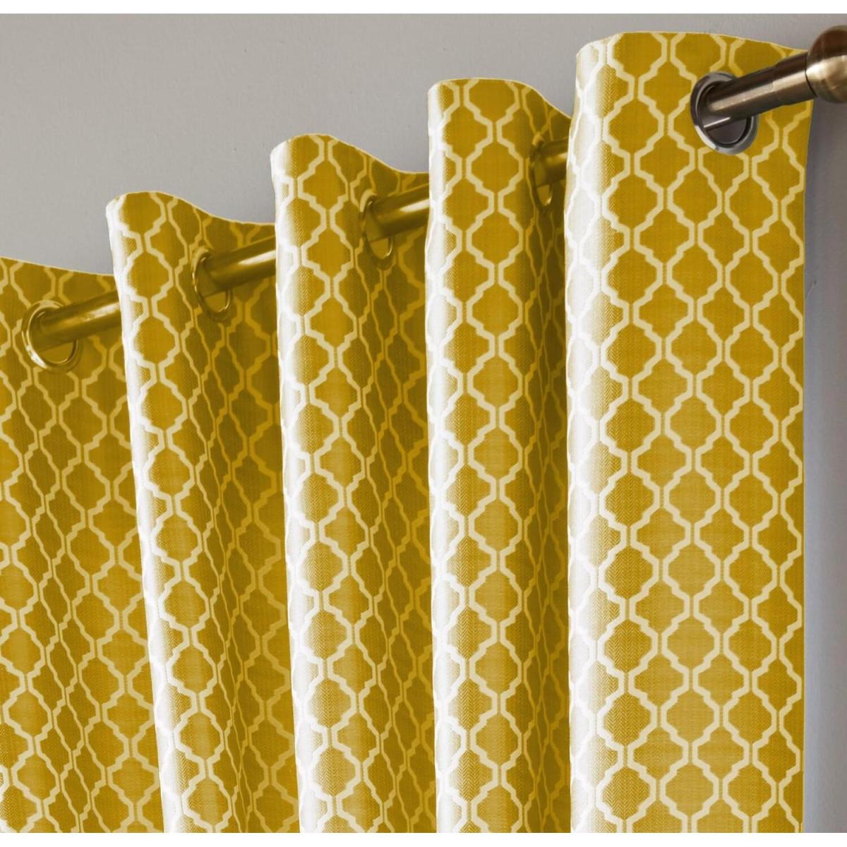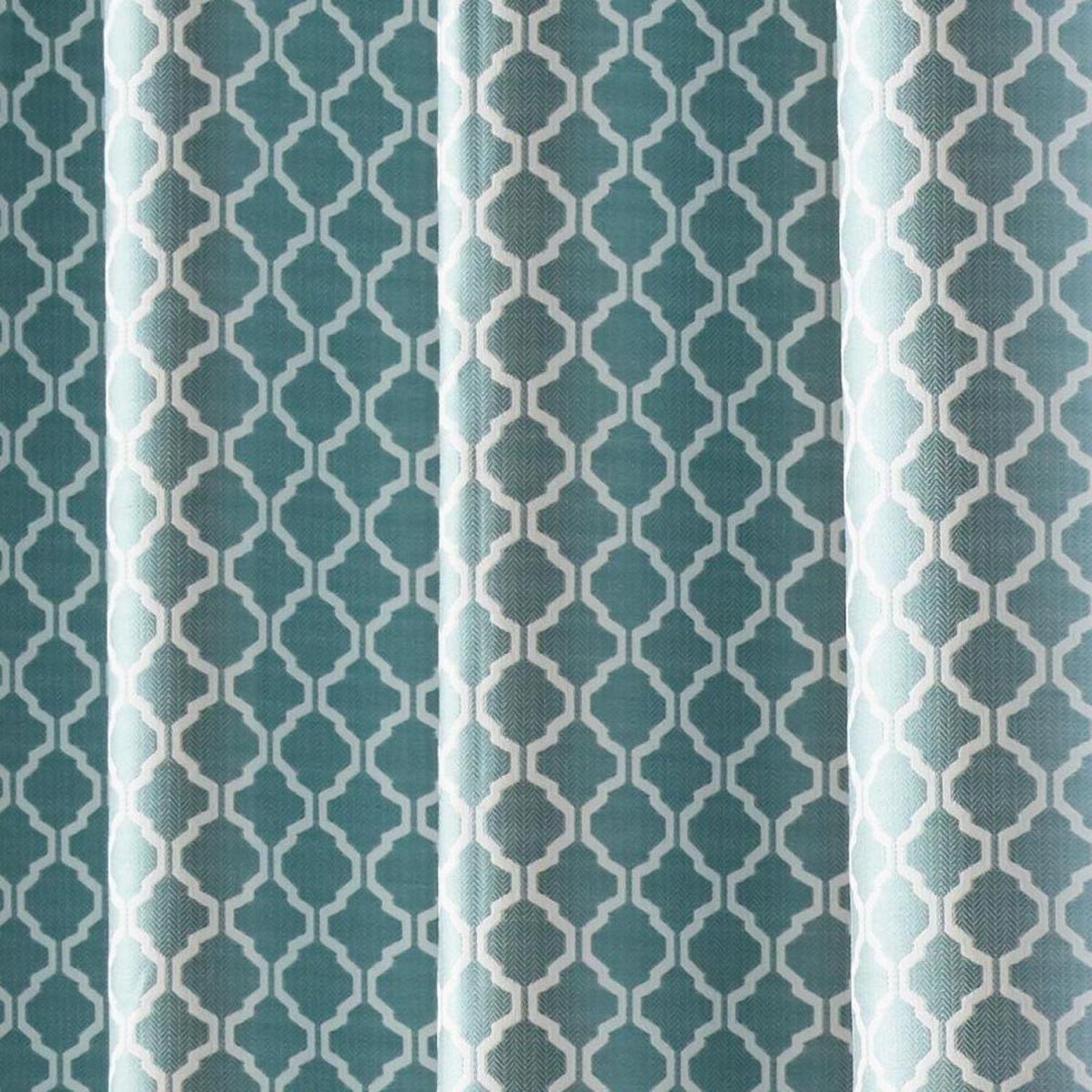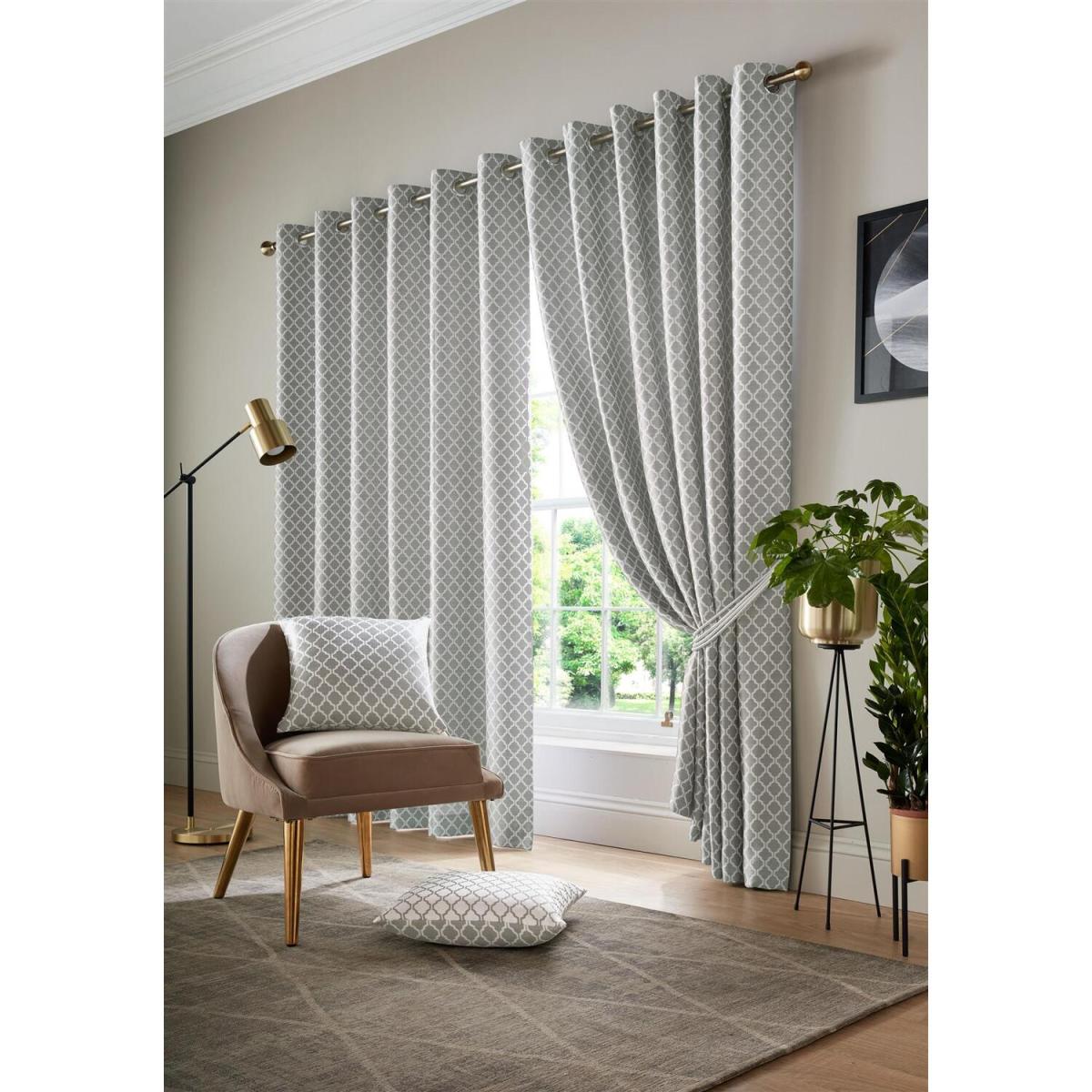 Perfect in any bedroom, or living room these room-darkening curtains are fully lined and complete with an eyelet heading for a contemporary look. The curtain material is medium weight and has an intricate two-tone jacquard weave design creating a geometric classic pattern. Machine washable 100% polyester.