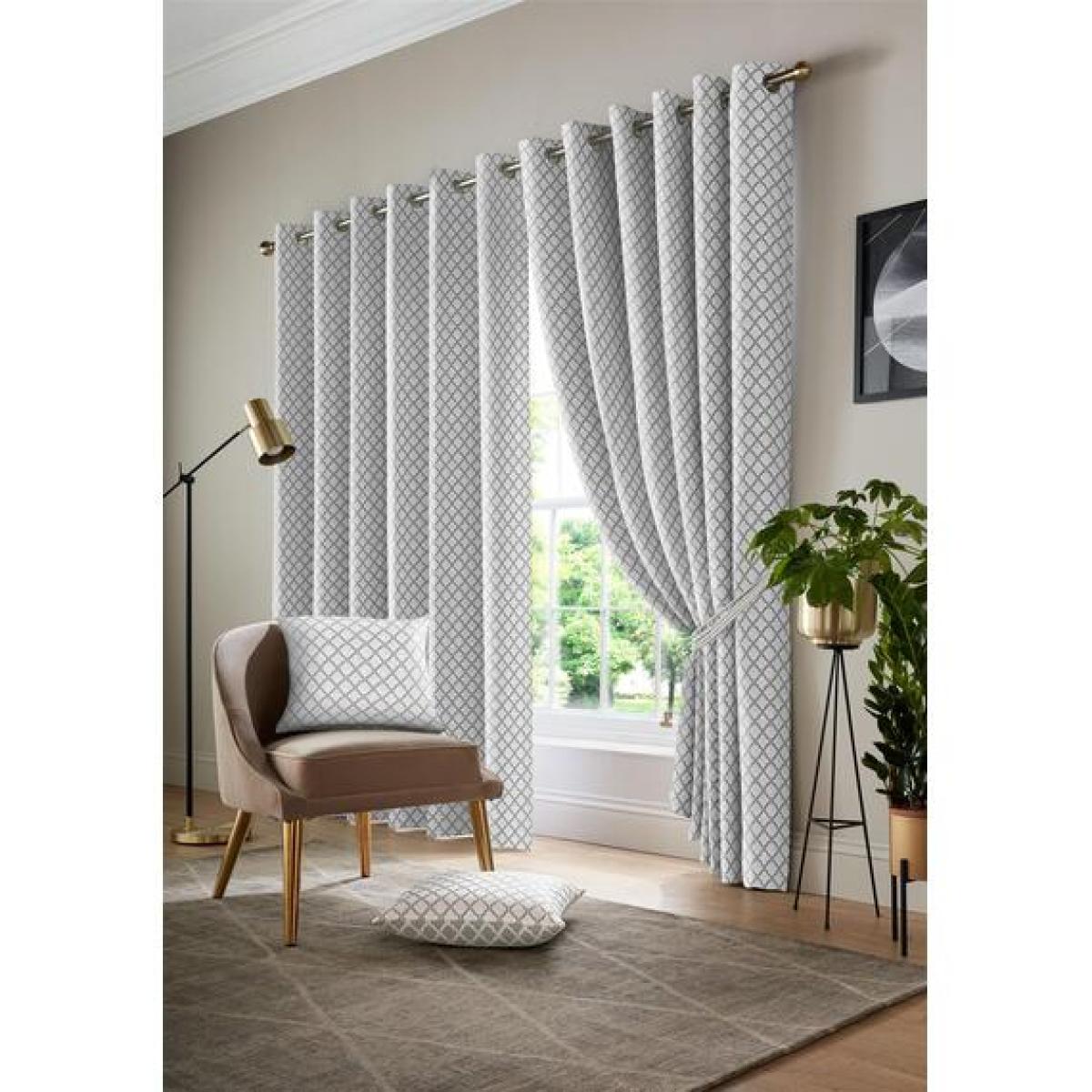 Perfect in any bedroom, or living room these room-darkening curtains are fully lined and complete with an eyelet heading for a contemporary look. The curtain material is medium weight and has an intricate two-tone jacquard weave design creating a geometric classic pattern. Machine washable 100 polyester.