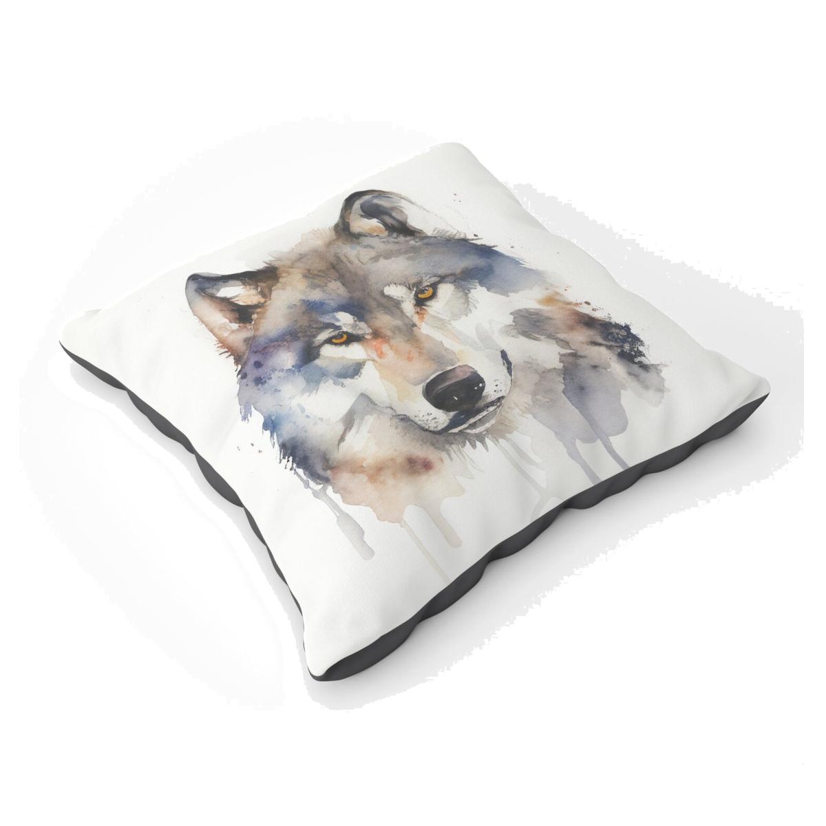 Wolf Watercolour Floor Cushion - Neutral