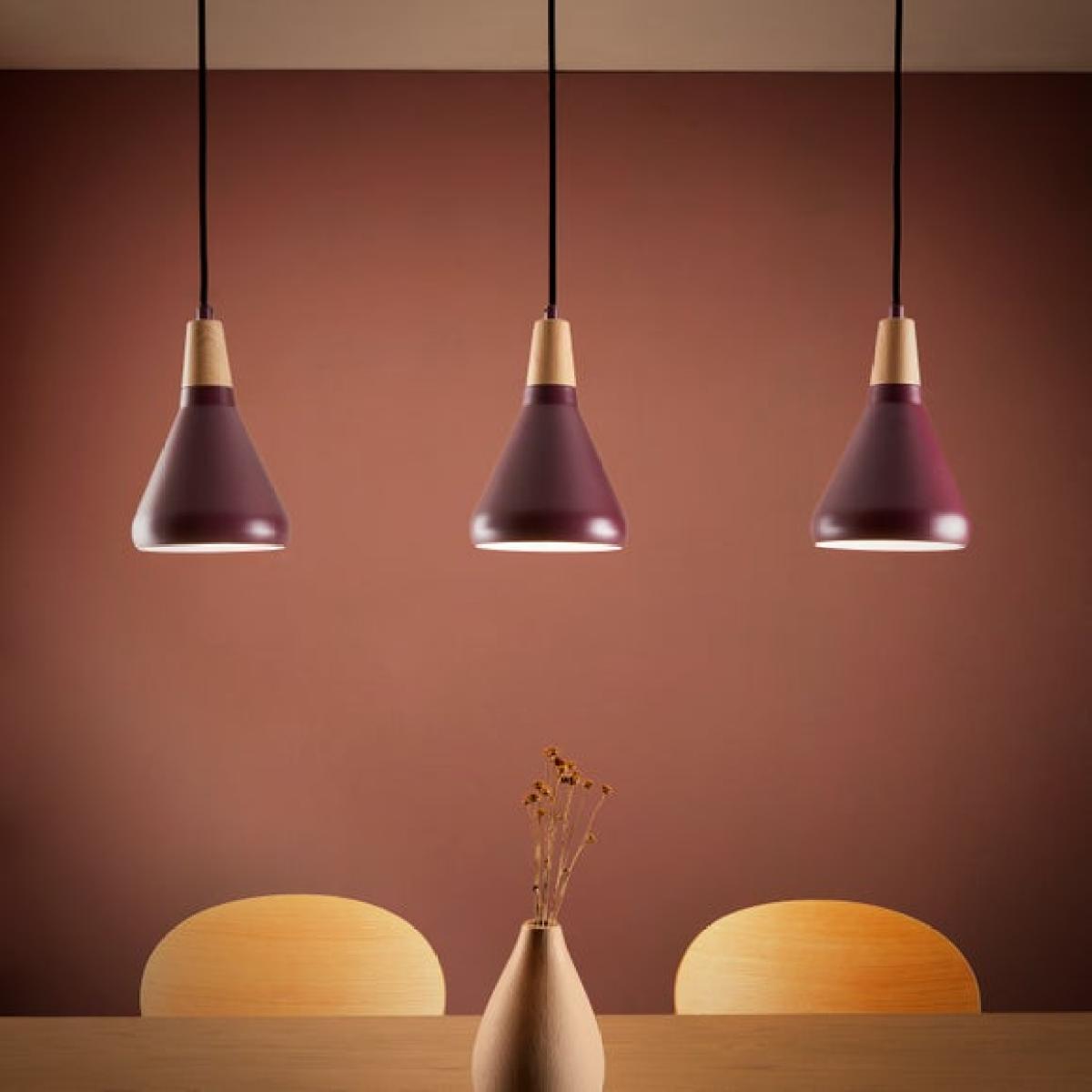 I love this three-light adjustable dining pendant because of its sleek, contemporary design that works well in various interior styles, from modern minimalism to more eclectic schemes. The ability to adjust each light allows for versatile lighting, perfect for creating ambience or task lighting over a dining table. It pairs well with neutral colour palettes, like soft pinks or greys, but can also add a sophisticated touch to darker, more dramatic interiors. Practical styling tips include hanging it at a height where it doesn’t obstruct views or conversation, and complementing it with matte black or gold accents in accessories or furniture for a cohesive look. It’s a versatile choice that combines form and function effortlessly.