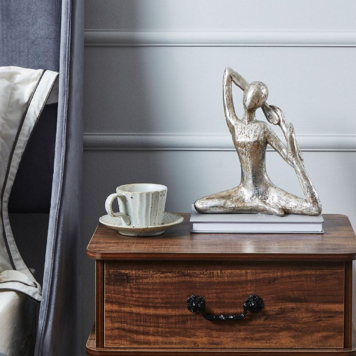 Ornamental sculpture of a woman doing yoga, made from metal and featuring a modern, minimalist design. A captivating piece that blends modern artistry with minimalist design, this sculpture features a sleek and simplified representation of a woman in a yoga pose, emphasising clean lines and abstract forms. Crafted from metal, its minimalist design adds a contemporary touch to any space, making it a perfect accent for modern interiors. Whether displayed on a shelf, mantel or desk, this sculpture serves as a unique and stylish statement piece. The combination of its artistic simplicity and metal construction gives it a timeless appeal, making it a versatile addition to your decor that inspires a sense of spirituality and freedom. Ornamental sculpture of a woman doing yoga, made from metal and featuring a modern, minimalist design. A captivating piece that blends modern artistry with minimalist design, this sculpture features a sleek and simplified representation of a woman in a yoga pose, emphasising clean lines and abstract forms. Crafted from metal, its minimalist design adds a contemporary touch to any space, making it a perfect accent for modern interiors. Whether displayed on a shelf, mantel or desk, this sculpture serves as a unique and stylish statement piece. The combination of its artistic simplicity and metal construction gives it a timeless appeal, making it a versatile addition to your decor that inspires a sense of spirituality and freedom.
