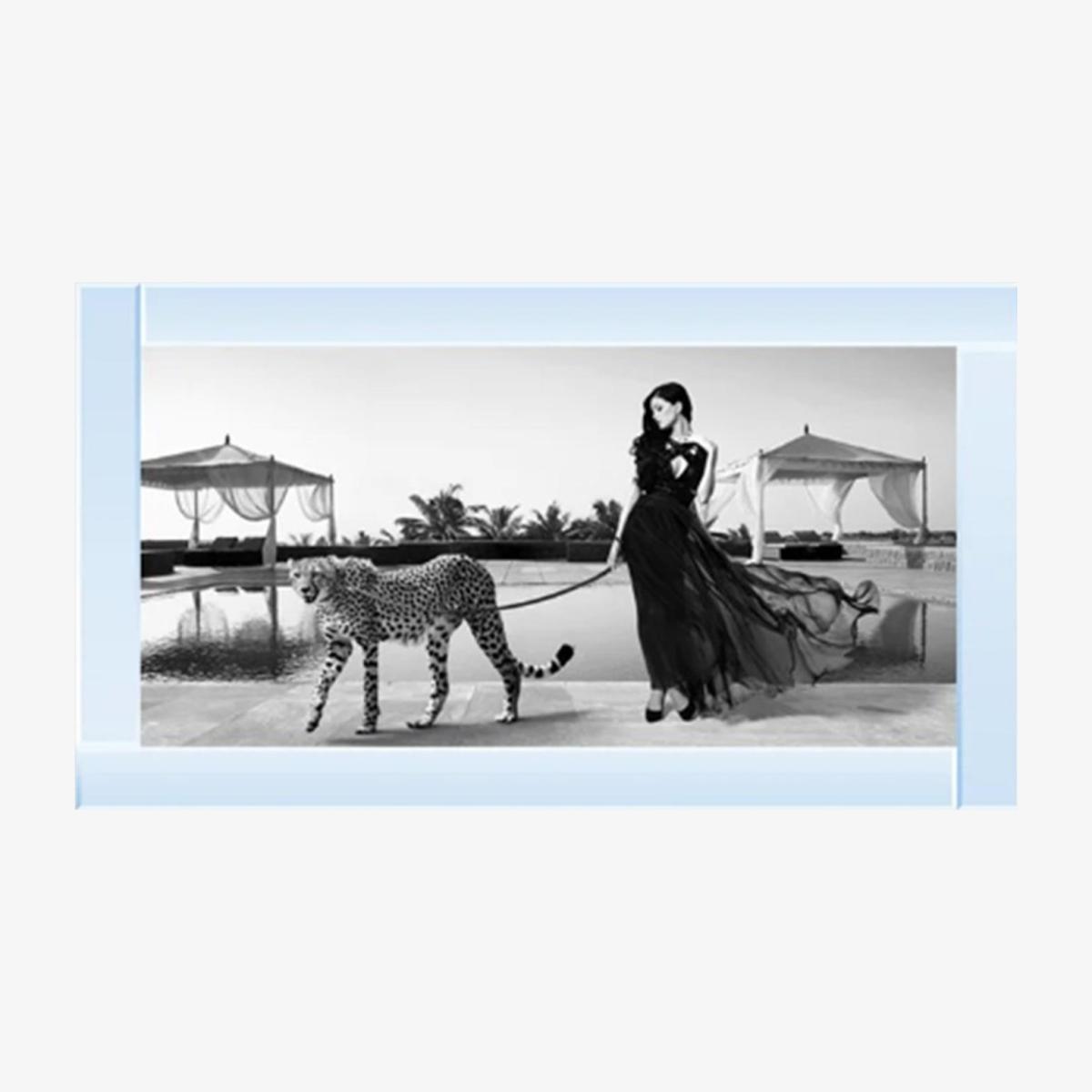 Woman with Cheetah Glitter Liquid Wall Art Dcor - Silver