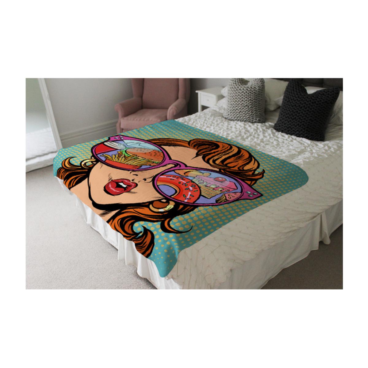 Woman with Sunglasses Fast Food and Sweets Reflection Designer Blanket - Green