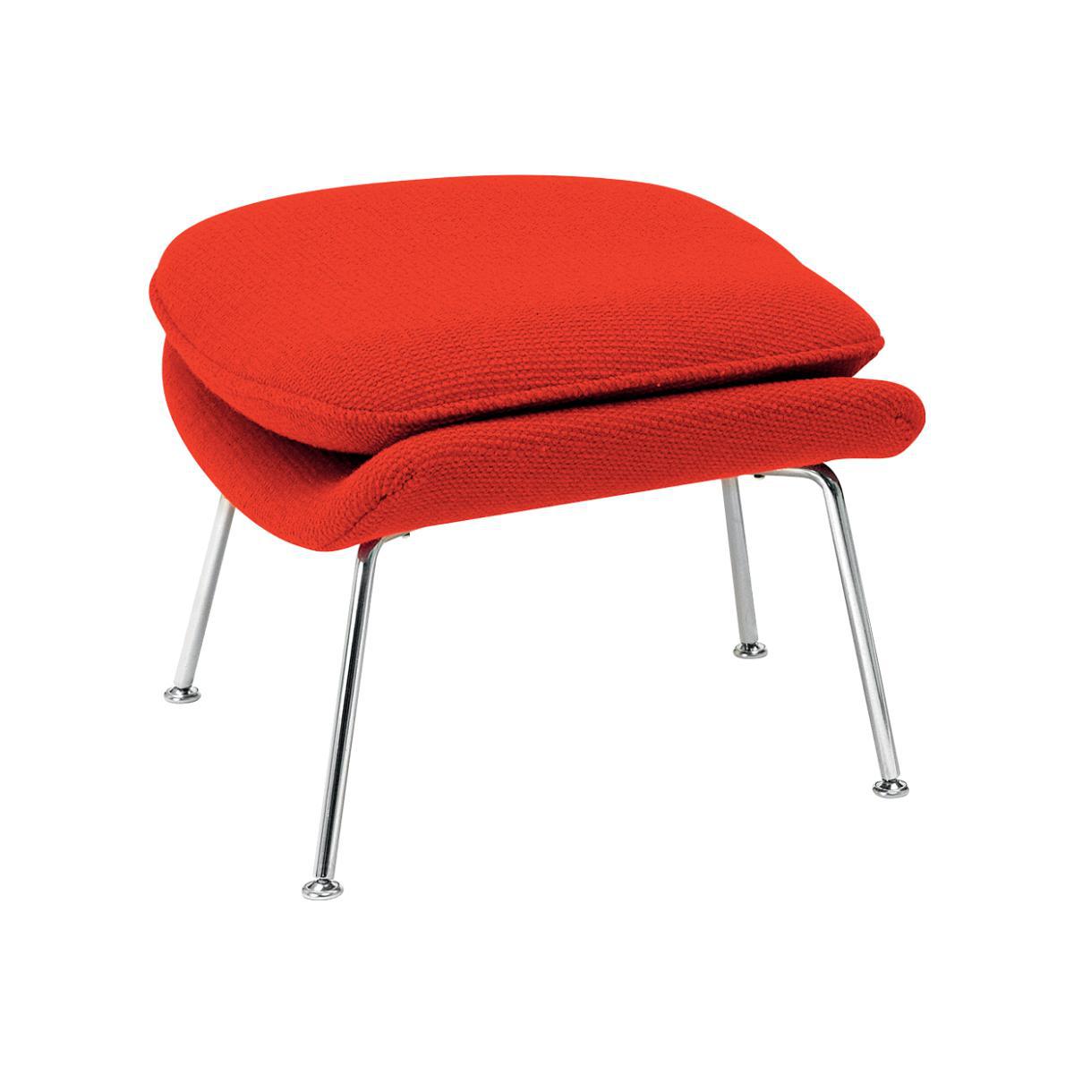 Designer Eero Saarinen created the ground-breaking Womb Collection in 1946 at Florence Knoll's request for a seating series that was ‘like a basket full of pillows’. With this demand for superior comfort in mind, Saarinen designed the ergonomic, enveloping Womb Ottoman to accompany the armchair, upholstered here in Cato fabric in an assortment of hues. The Saarinen Womb Ottoman boasts a polished chrome-plated steel base, with an upholstered, moulded fibreglass shell. This ultimate designer ottoman doesn’t compromise on practicality or style, blending organic shape with a unique aesthetic. Like many of Saarinen’s furniture designs, the Womb Ottoman required production techniques and materials that were still in the infancy of their existence. Saarinen and Knoll innovatively found a boat builder in New Jersey who was experimenting with fibreglass and resin to help successfully develop manufacturing methods for the new design. Inspired by a hand-woven aesthetic, the Cato fabric that this Womb Ottoman is upholstered in was introduced in 1961 and is crafted from a wool-mix composition, with an exaggerated texture that creates the ultimate accent. The sculptural form of the Womb Ottoman continues to be one of the most iconic and recognised representations of mid-century Scandinavian style, making it an ideal investment piece for both traditional and modern interior schemes. The Womb Ottoman is available in in brown, fire red, green, grey, ivory, natural and sand hues, making it the perfect companion for your Womb Armchair, sure to endure though the years.