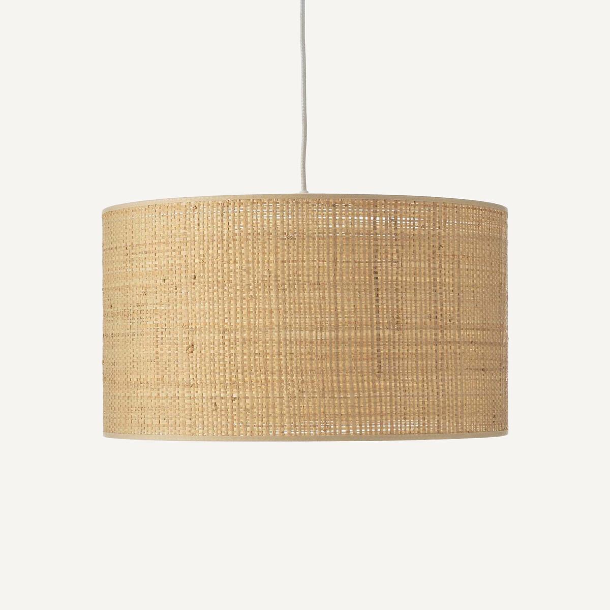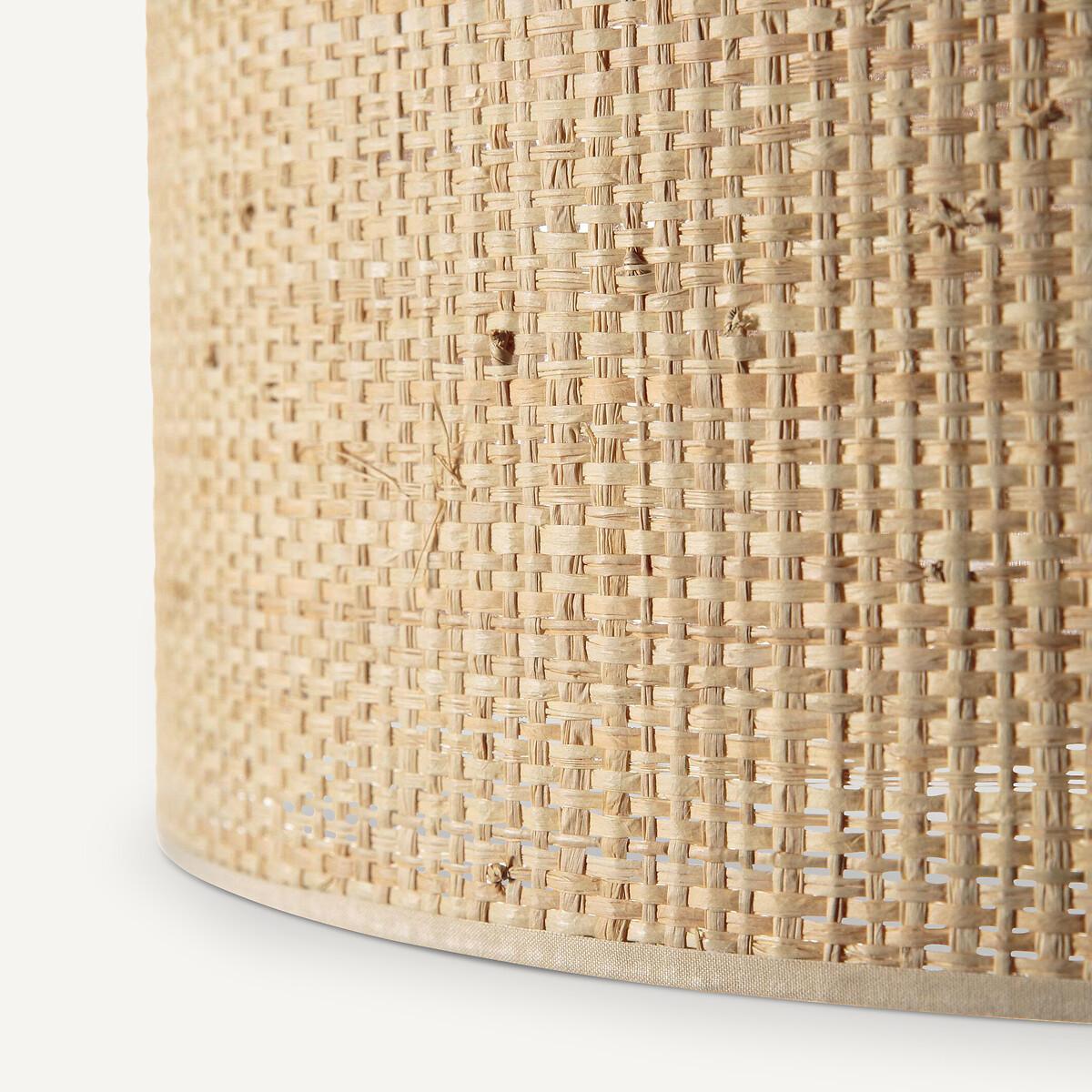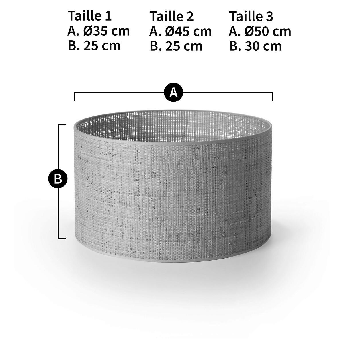 Ideal for bedrooms, living rooms or anywhere else you want to create a relaxed atmosphere, our Wombat lampshade diffuses a soft and warm light through its natural woven fabric exterior. Available in 5 sizes, it can be used to dress standing lamps, table lamps or ceiling pendants. Made in France. Product Details • Outdoor lampshade in natural raban • White epoxy steel structure • Black ribbon • Support for E27 socket, max 60W bulb (not supplied) • Electrical cable not included • For ceiling pendant use, the shade is compatible with our Sevigni electrical cable or the Luce pendant socket, both sold separately • The Wombat lampshade works as a shade for standing/table lamps or as a pendant shade. Dimensions • Diameter 35 x Height 25 cm • Diameter 45 x Height 25 cm • Diameter 50 x Height 30 cm • Made in France.