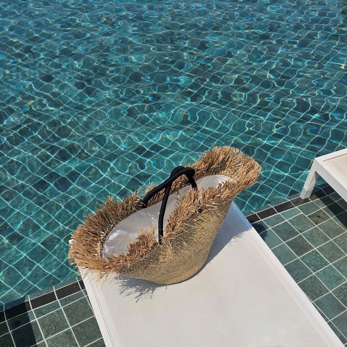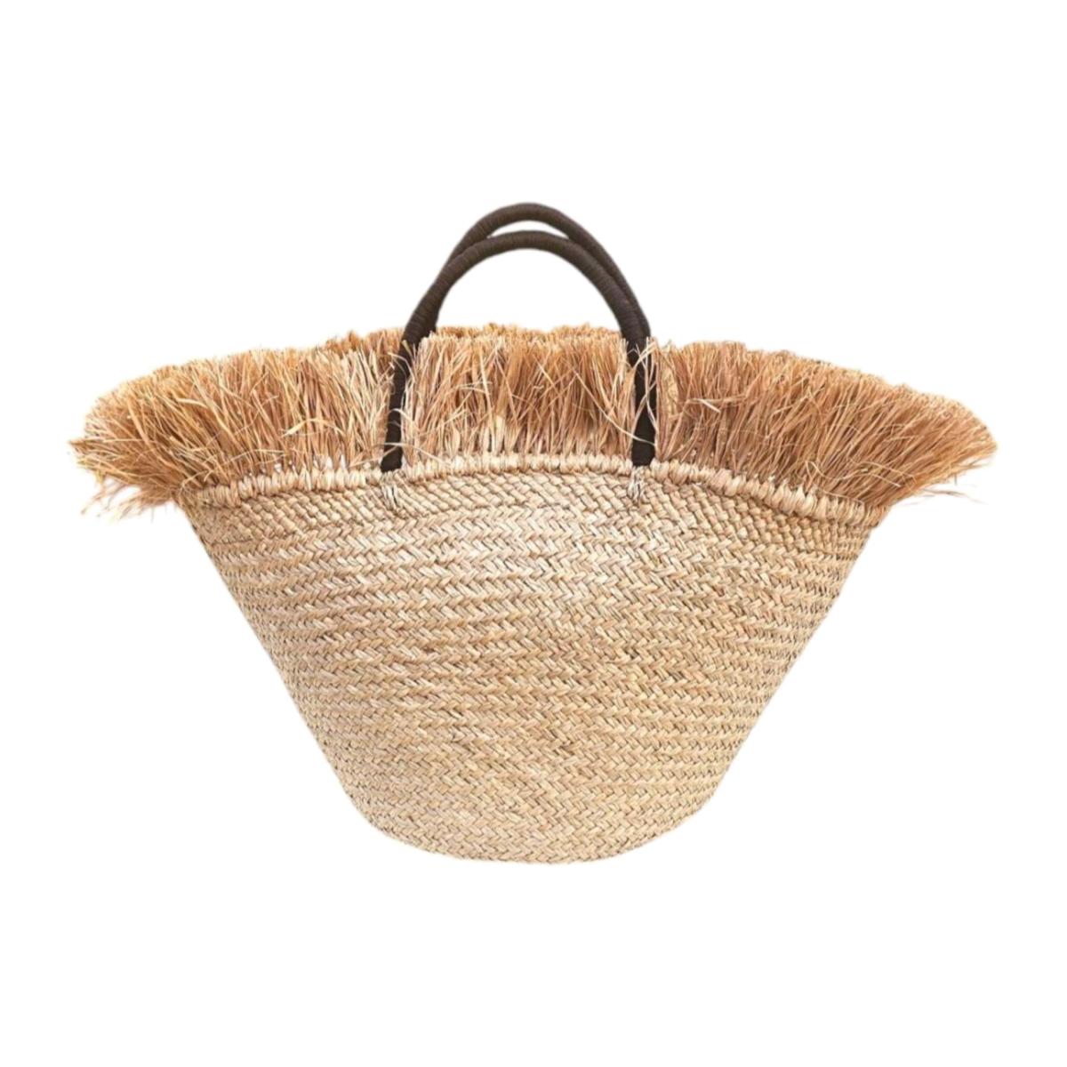 Unleash your inner bohemian with the Nina Fringe beach basket, an exquisitely crafted accessory perfect for sun-soaked adventures. Featuring a wide, flared shape, this basket offers ample space for all your beach essentials, and it has a natural cotton lining and drawstring closure to keep your valuables safely tucked away. Adorned with natural fiber fringes, it brings a touch of free-spirited charm to your beach attire. Woven from sturdy Balinese Straw, the Norah Fringe beach basket ensures durability and longevity, making it a reliable companion for countless beach outings. Its robust handle provides comfortable carrying, allowing you to stroll along the sandy shores with ease.