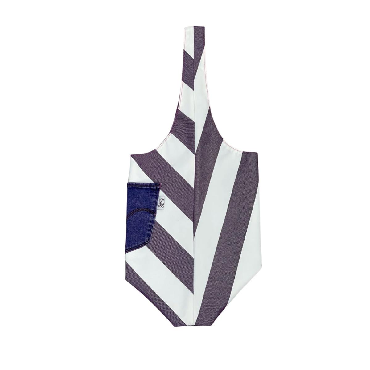 Upcycled Upholstery Bag. Fully reversible made from upholstery remnants from deck chair material into this beautiful bag that can be used for carrying daytime items or for nipping to the market or for brunch. Made from discarded upholstery and lined with contrast lining. A very comfortable bag designed to sit comfortably on the shoulder. Vegan, and metal free. Hand and machine crafted. Each bag is one of a kind.