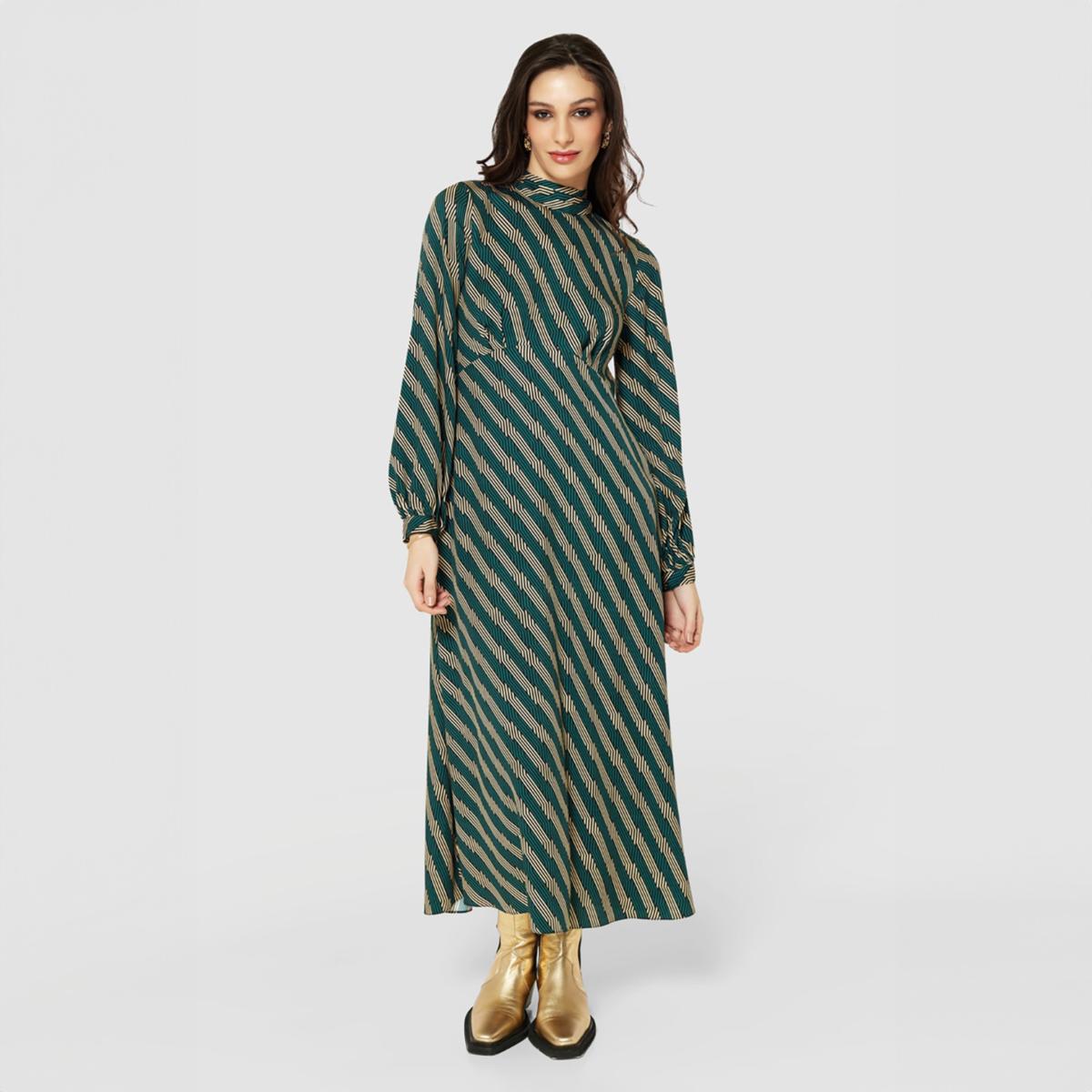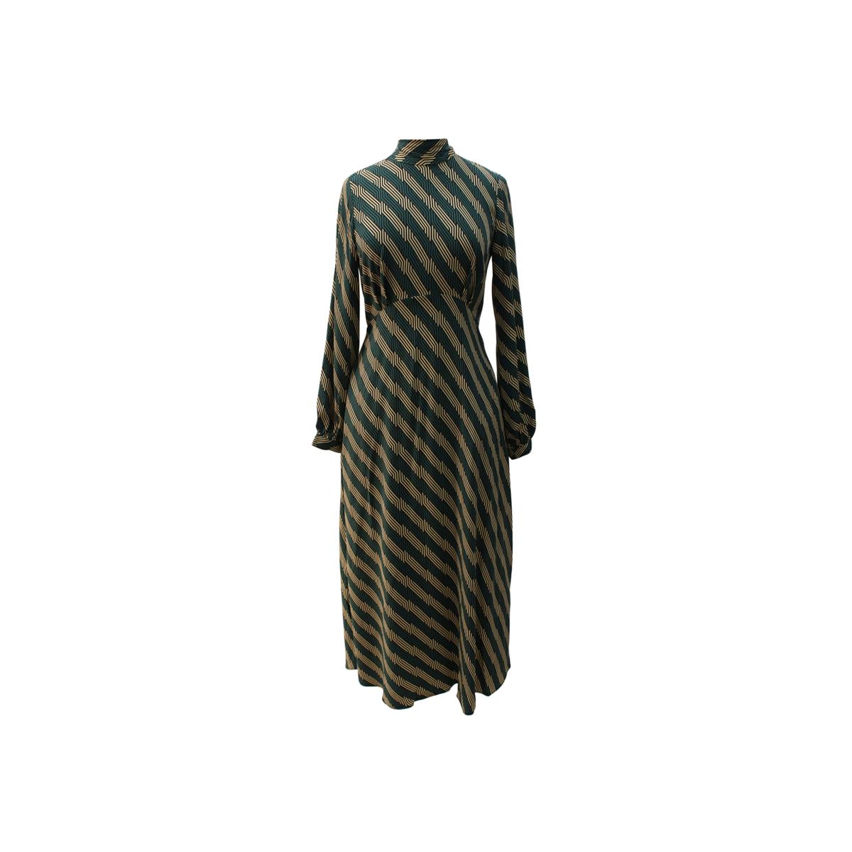 This dress is a versatile choice that can add a touch of sophistication to various interiors, especially those with a modern or eclectic vibe. I love its bold teal and pattern that can complement neutral or rich, textured spaces. As a stylist, I’d suggest pairing it with minimal decor in your wardrobe, allowing the dress to be the statement piece. Practical styling tips include layering with a tailored blazer or pairing with simple accessories for an understated look, making it adaptable for both daytime outings and evening events. For storage, a well-organised wardrobe with dedicated space for statement pieces like this ensures it stays in prime condition and ready to wear.