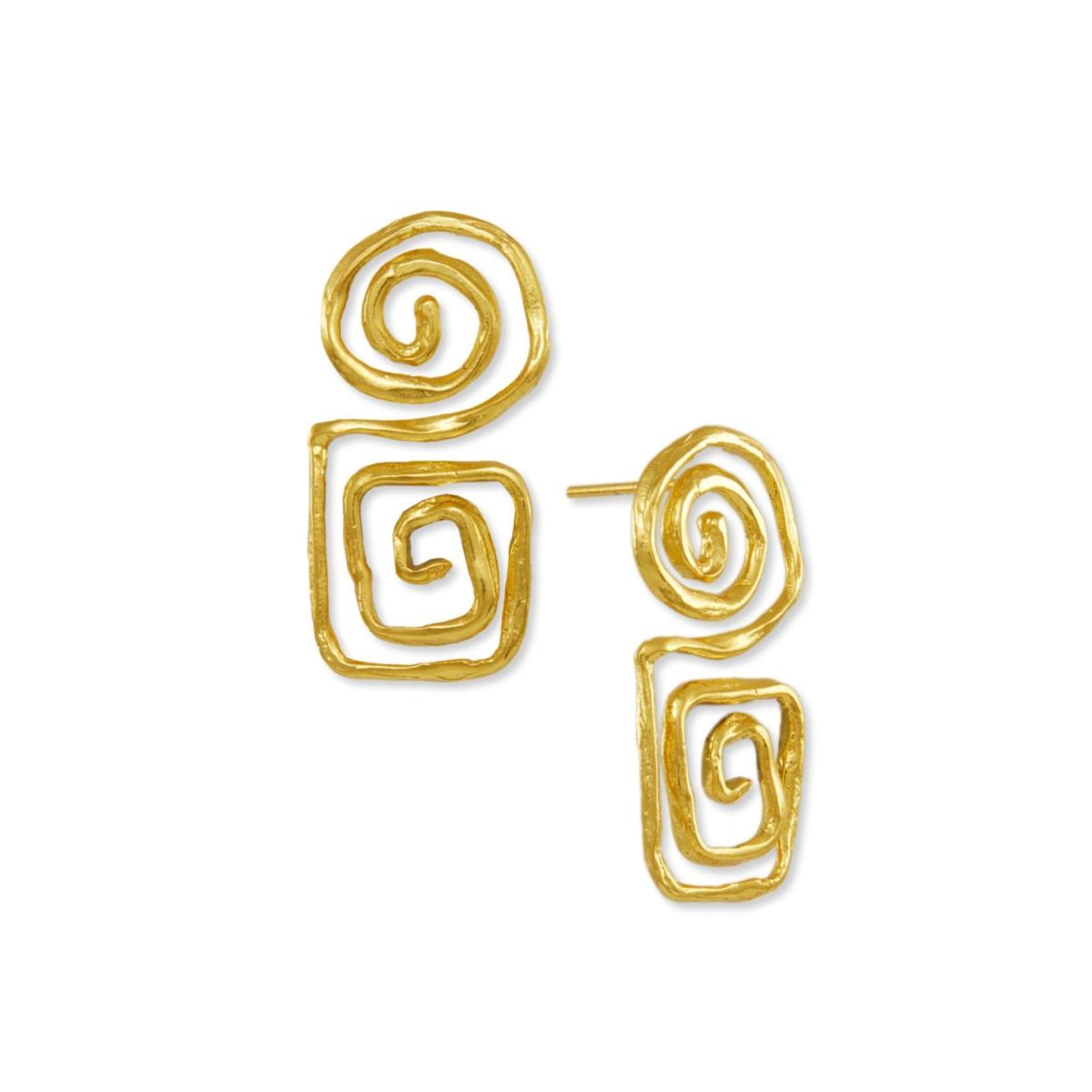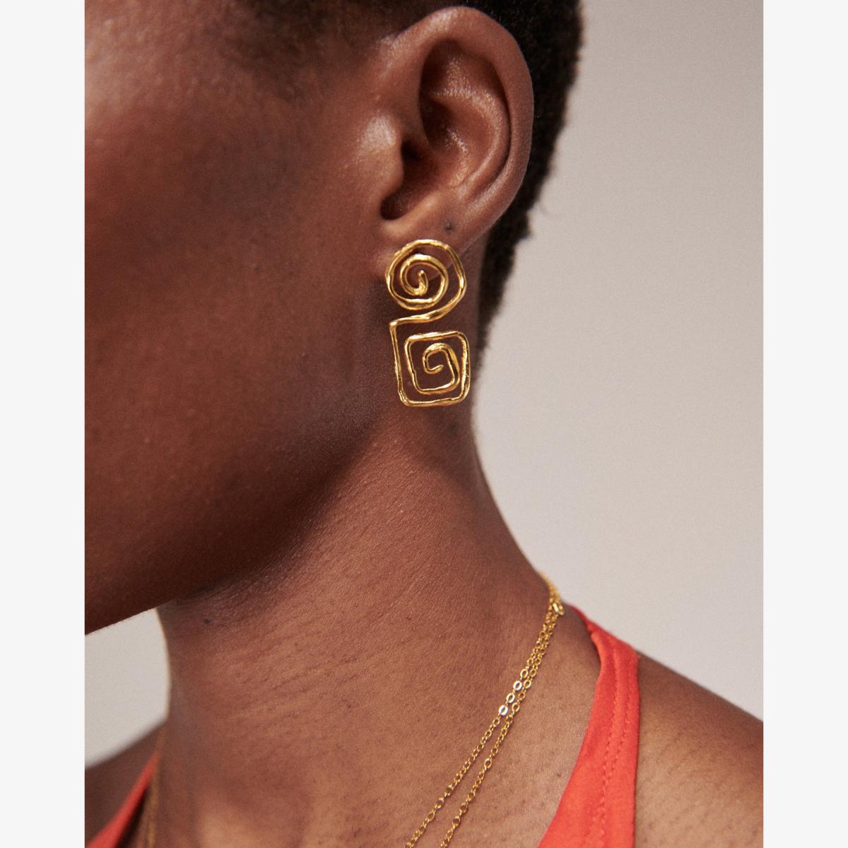 The Megara geometric spiral stud Earrings from Ottoman Hands add a golden touch to any look, featuring a spiral design created with 21ct gold-plated recycled brass with gold-plated sterling silver ear posts. Each pair is sustainably handcrafted in our Istanbul workshop, so you can look good, while feeling good.