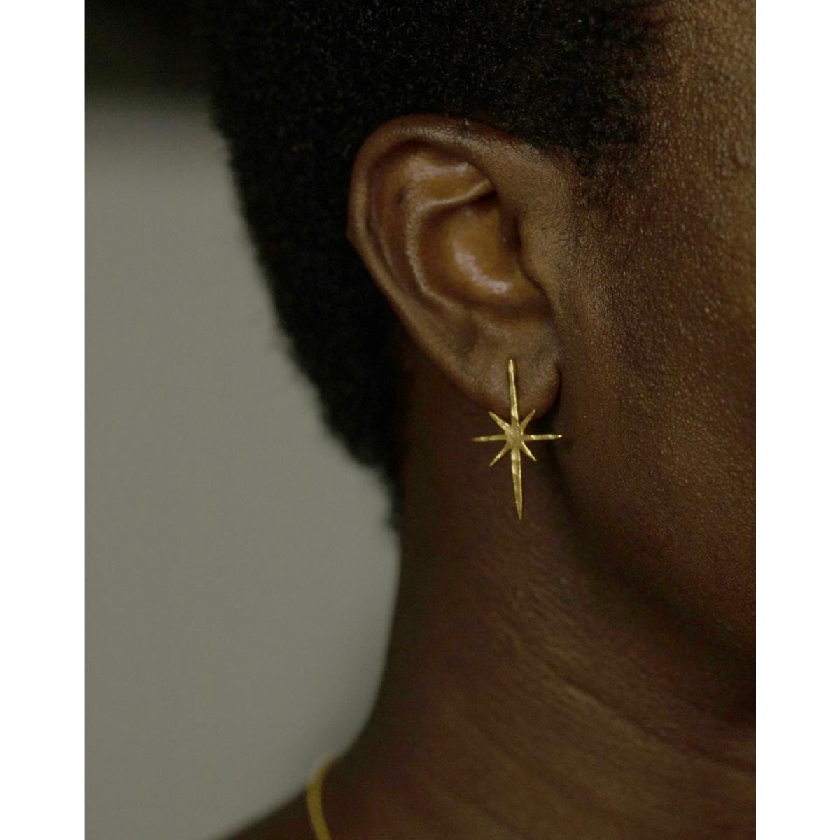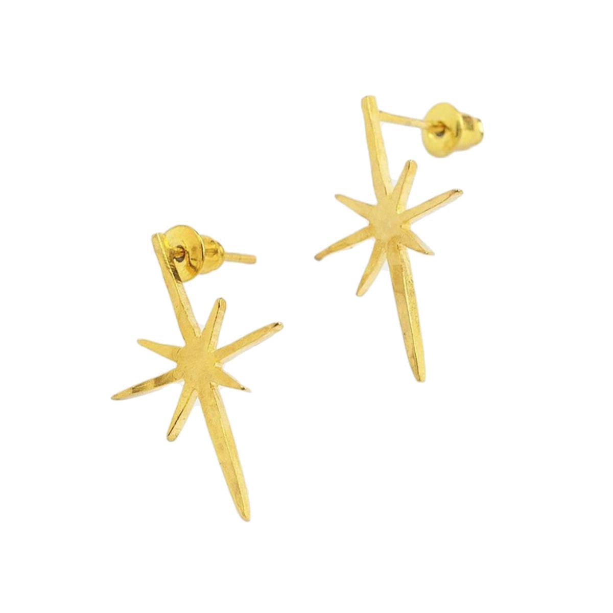 Add a stellar touch to your wardrobe with these beautiful northern star gold earrings. Crafted from 21ct gold-plated recycled brass, this chic yet striking star-shaped pair has been finished with our signature hand-hammered texture.