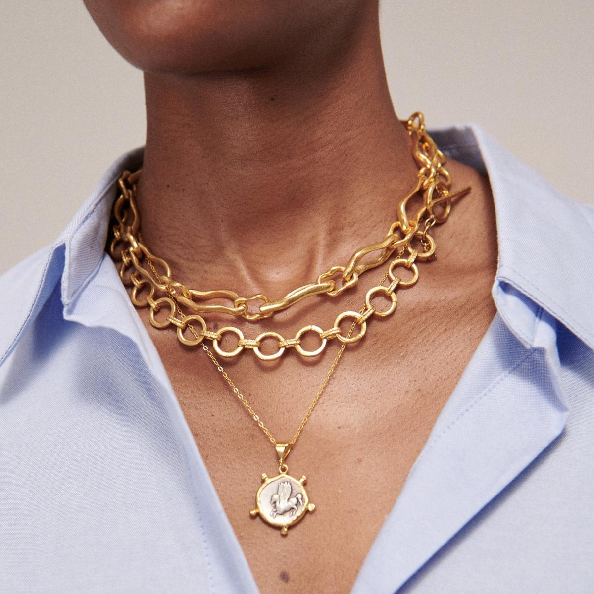 Take your necklace stack to new heights with the Pegasus Mixed Metal Pendant Necklace. Featuring an antique Pegasus embossed coin, encased in a contrasting golden border, the Pegasus mixed metal necklace from Ottoman Hands is expertly handcrafted in our Istanbul workshop from sustainable 21ct gold-plated recycled brass.