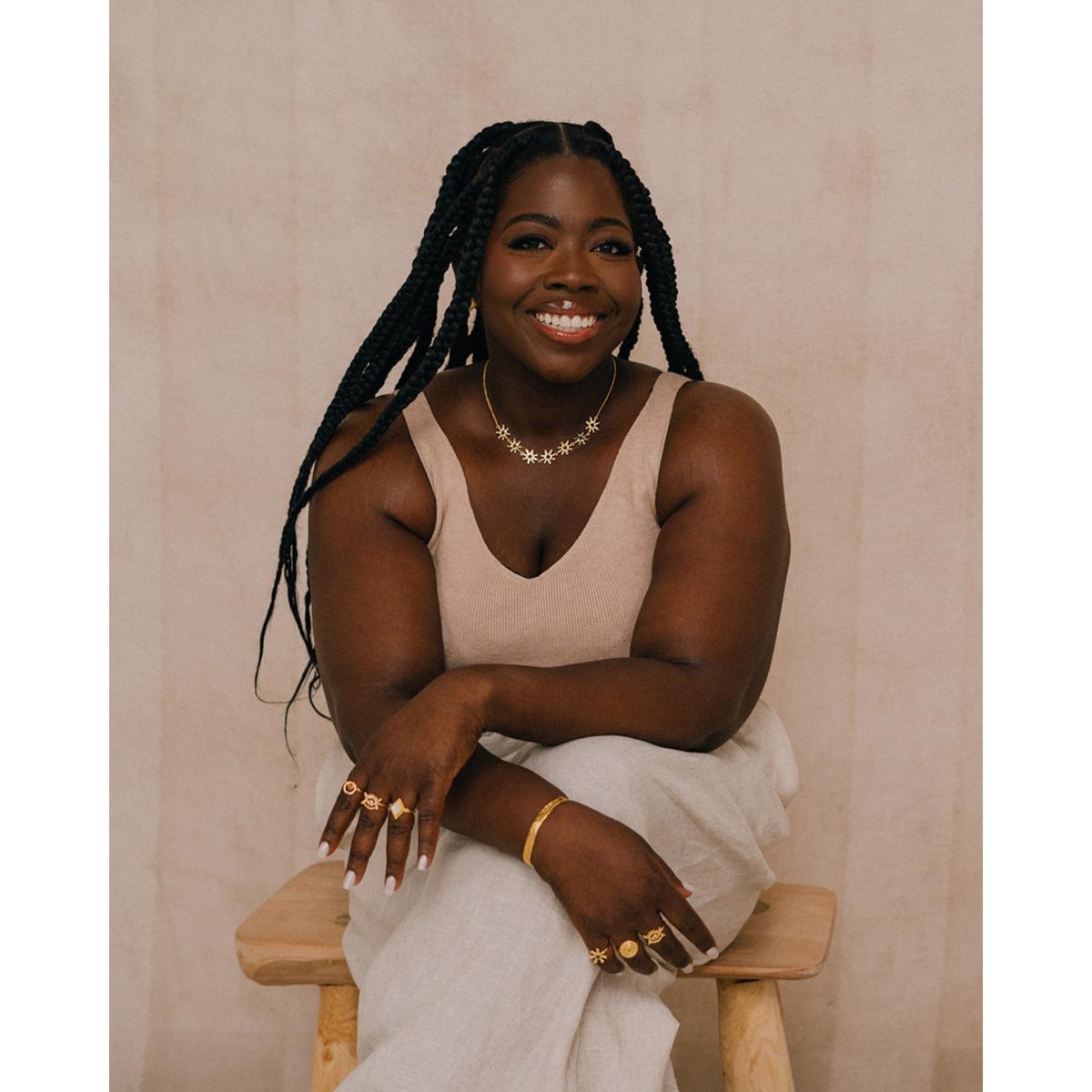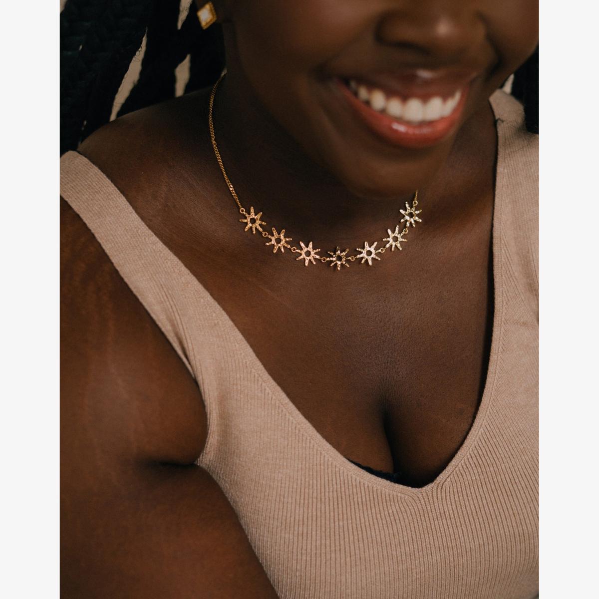 Stephanie Yeboah x Ottoman Hands, a collaboration collection of jewellery inspired by Ghanaian symbolism. Nsoromma is the Akan word for ‘star’, also meaning ‘Child of the Heavens’; a symbol of faith. The Nsoromma Star Necklace depicts this beautiful Adinkra symbol as constellation of stars adorning your neck, creating a timeless statement piece and set in shimmering 18ct gold-plated recycled brass. Complete the look with the Nsoromma Star Hoop Earrings, or layer this golden constellation with your favourite necklaces for a modern, delicate necklace stack.